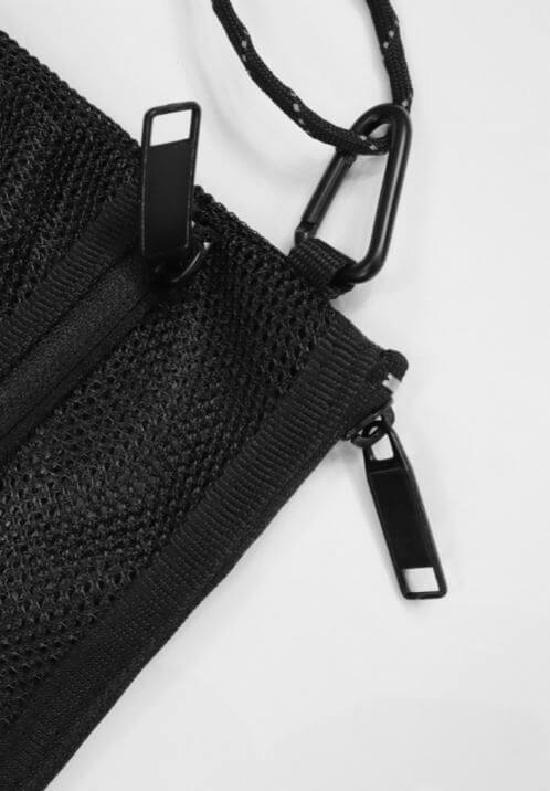- 雙層拉鍊收納袋,使用網布面料製作而成。