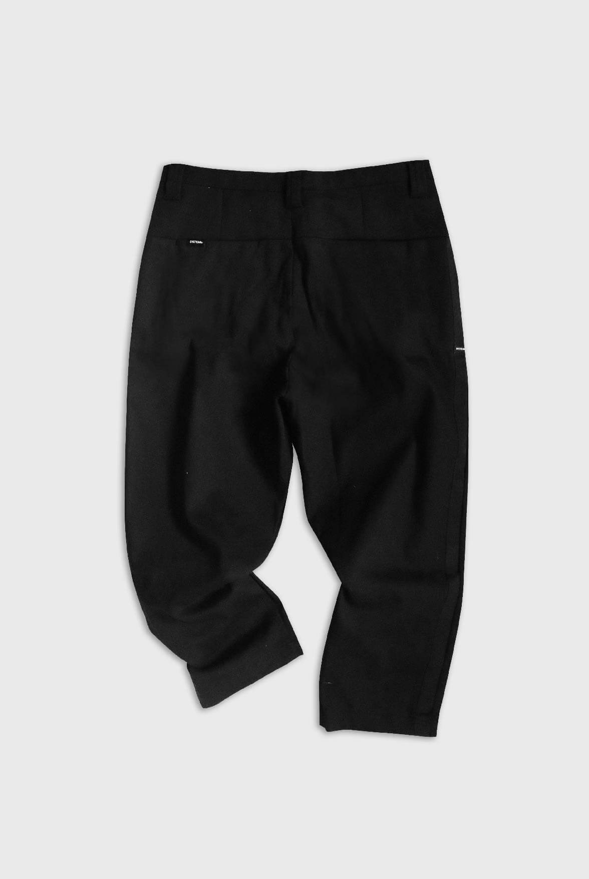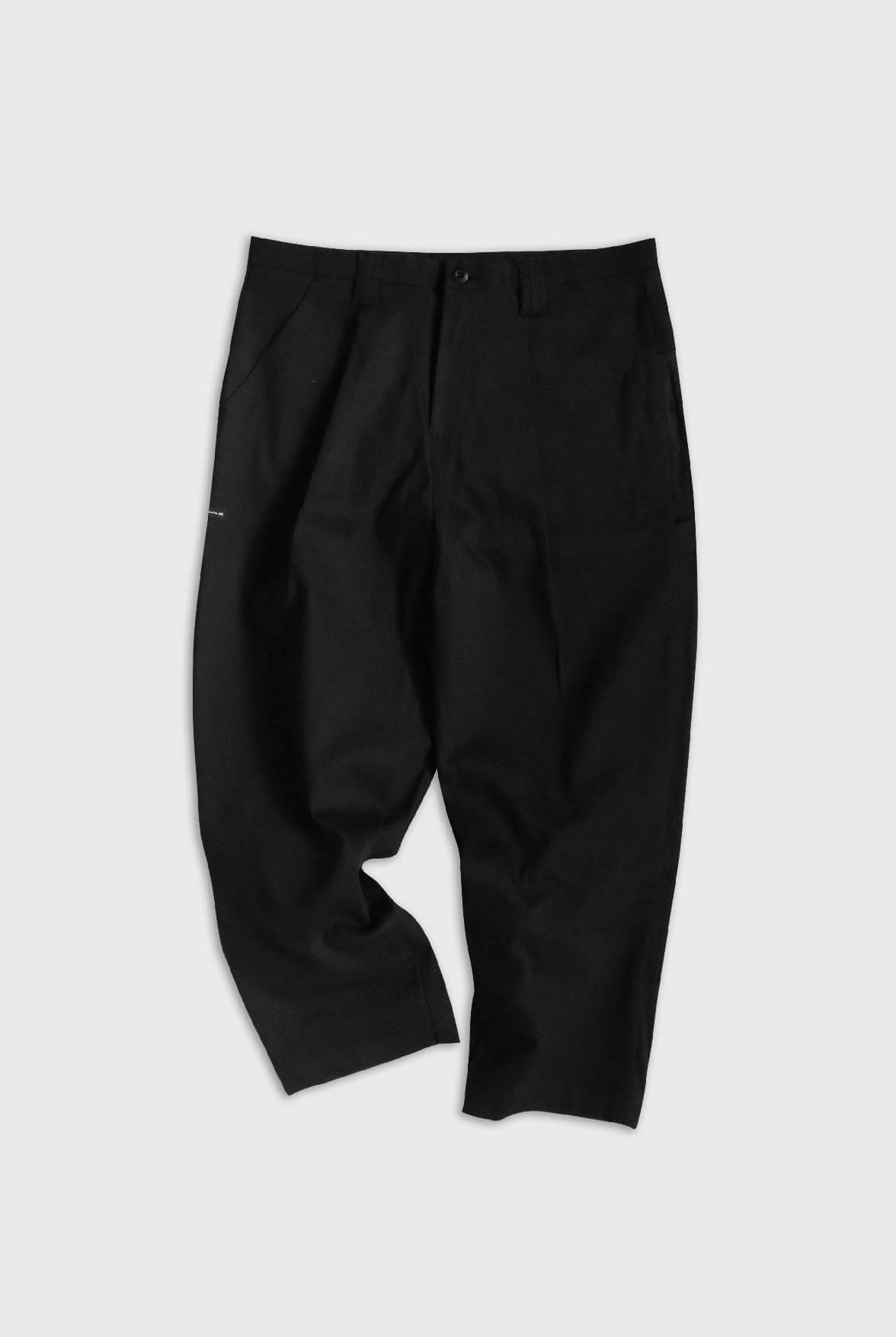 - 寬鬆九分褲型,兩側黑色LOGO緹花面料拼接。