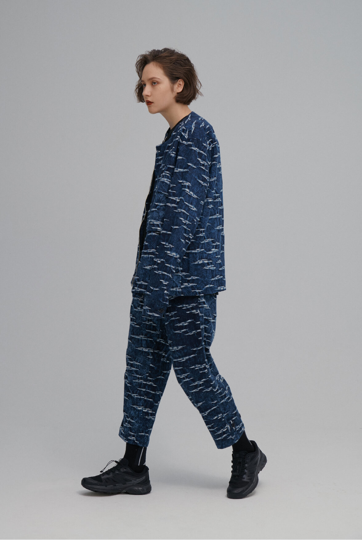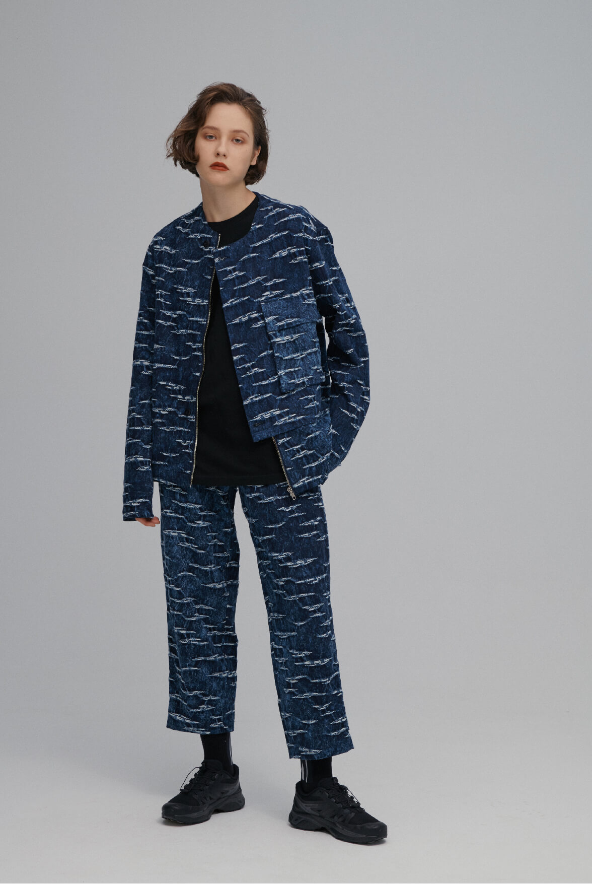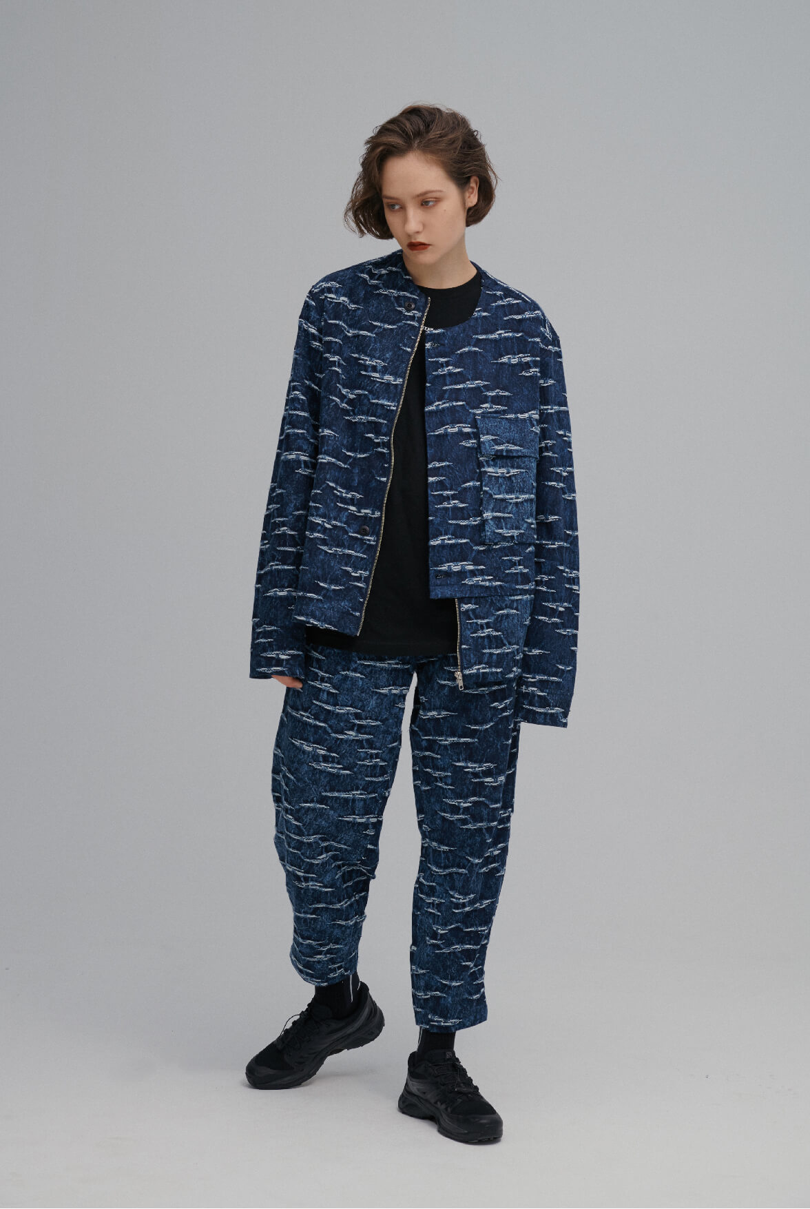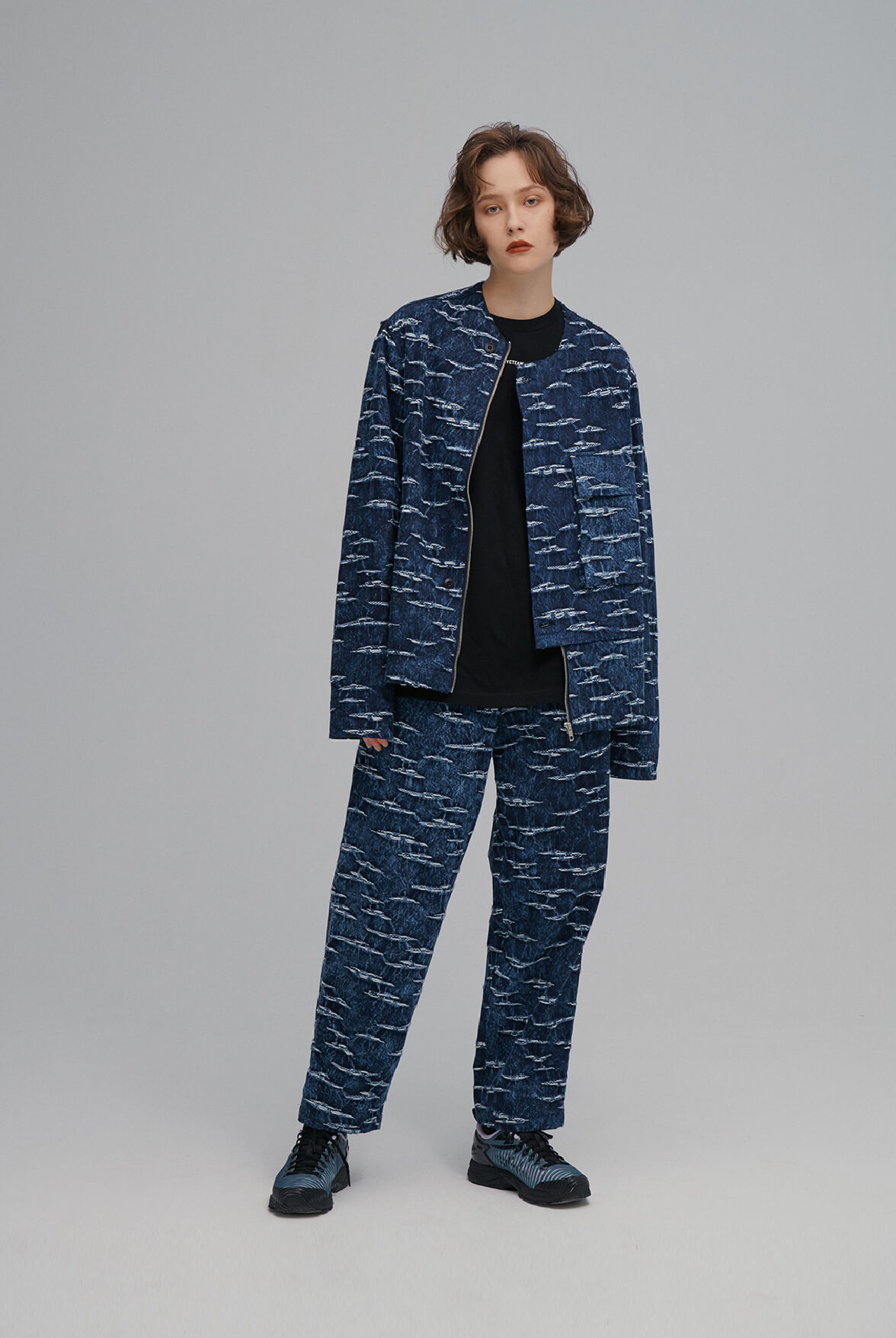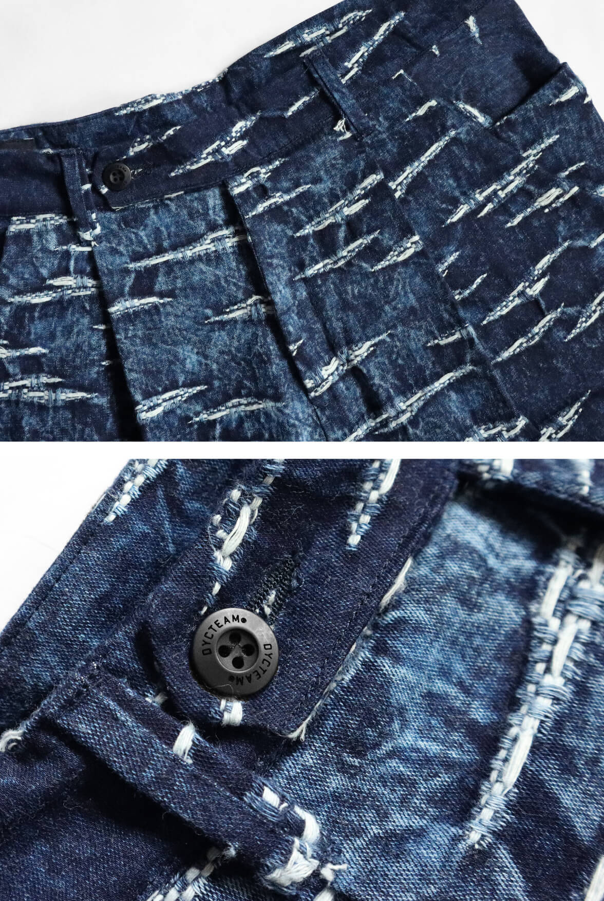 - 海洋紋緹花丹寧水洗效果。