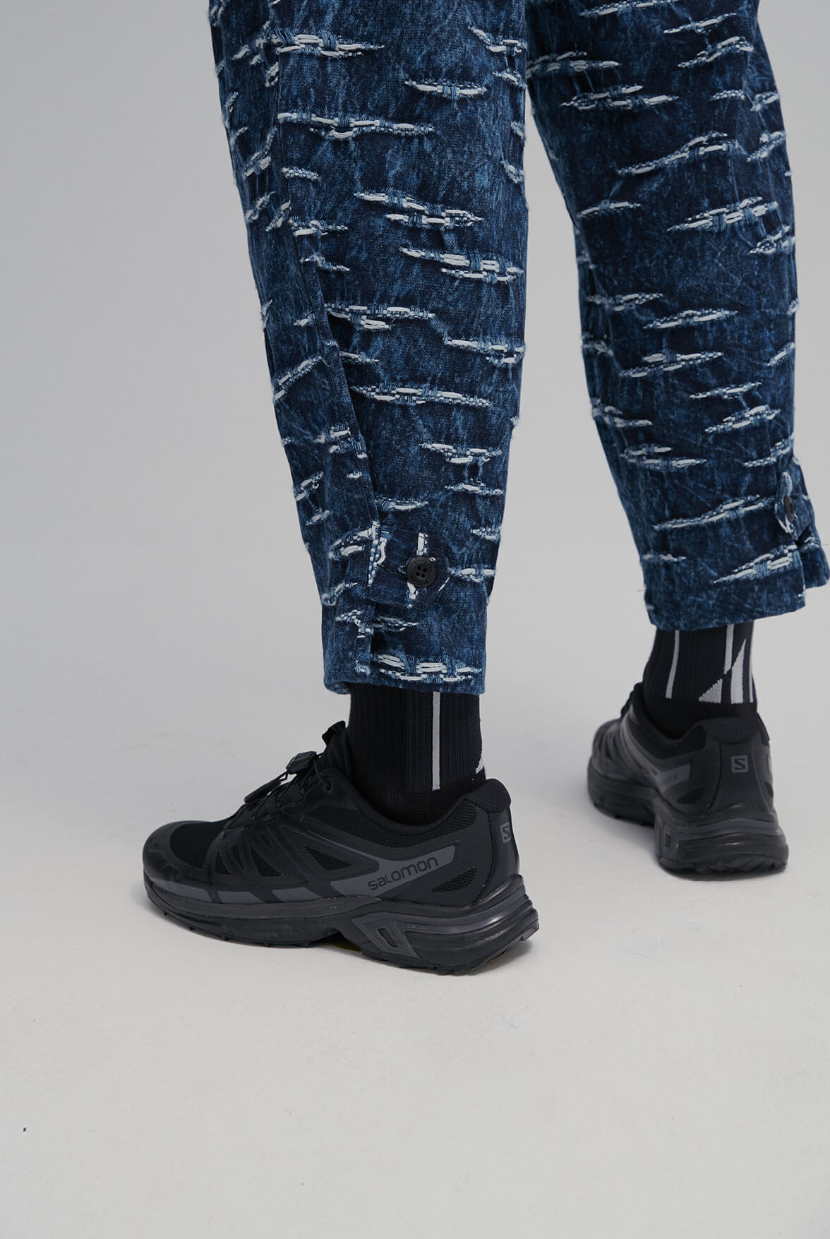 - 褲腳鈕扣細節,可做縮口調節。
