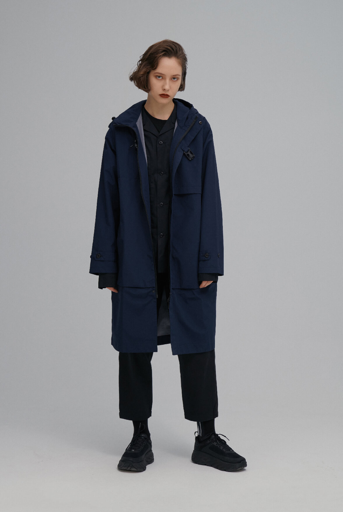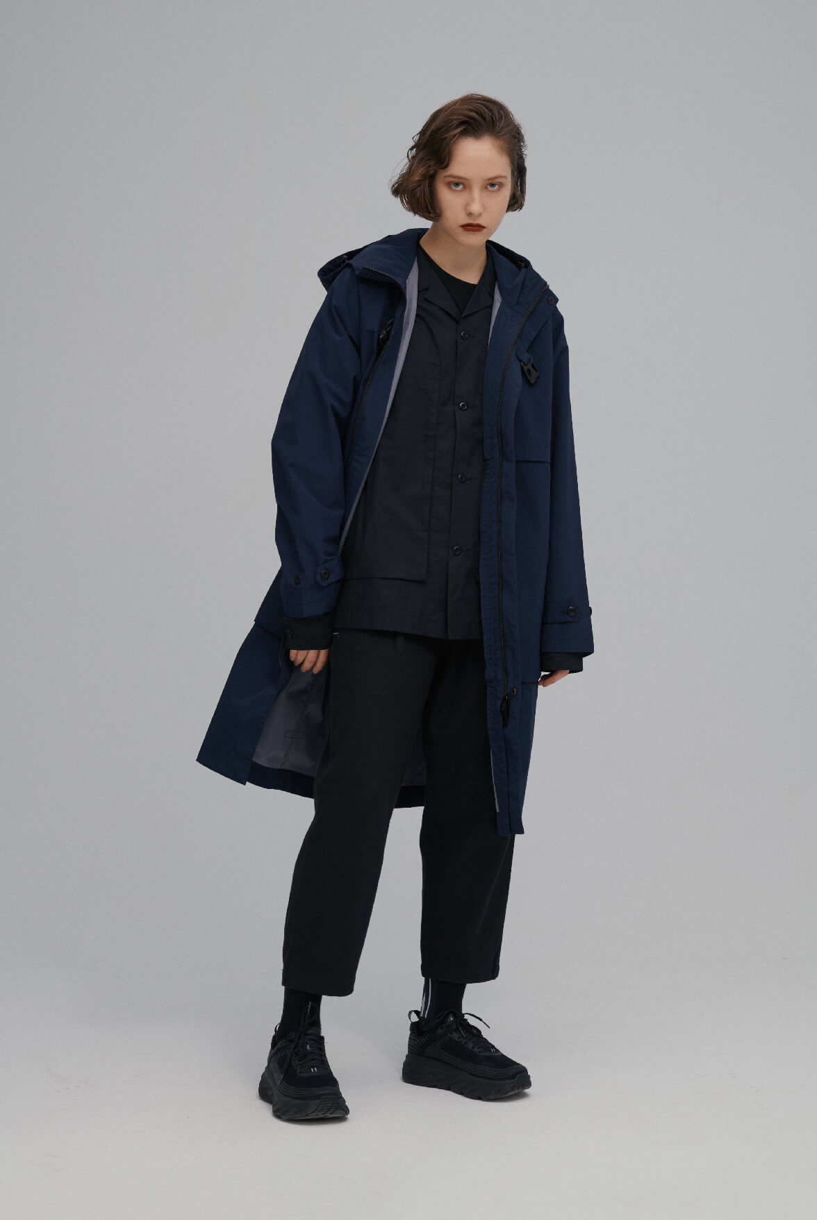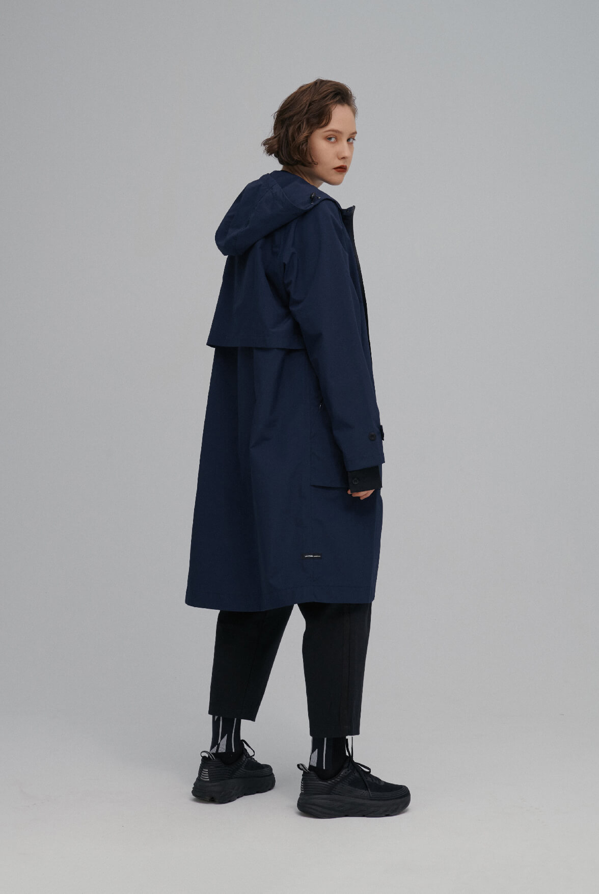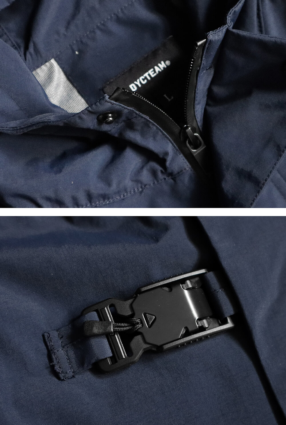 - 連帽兩側束繩拉伸,門襟扣具、拉鍊開合,袖口鈕扣調節。