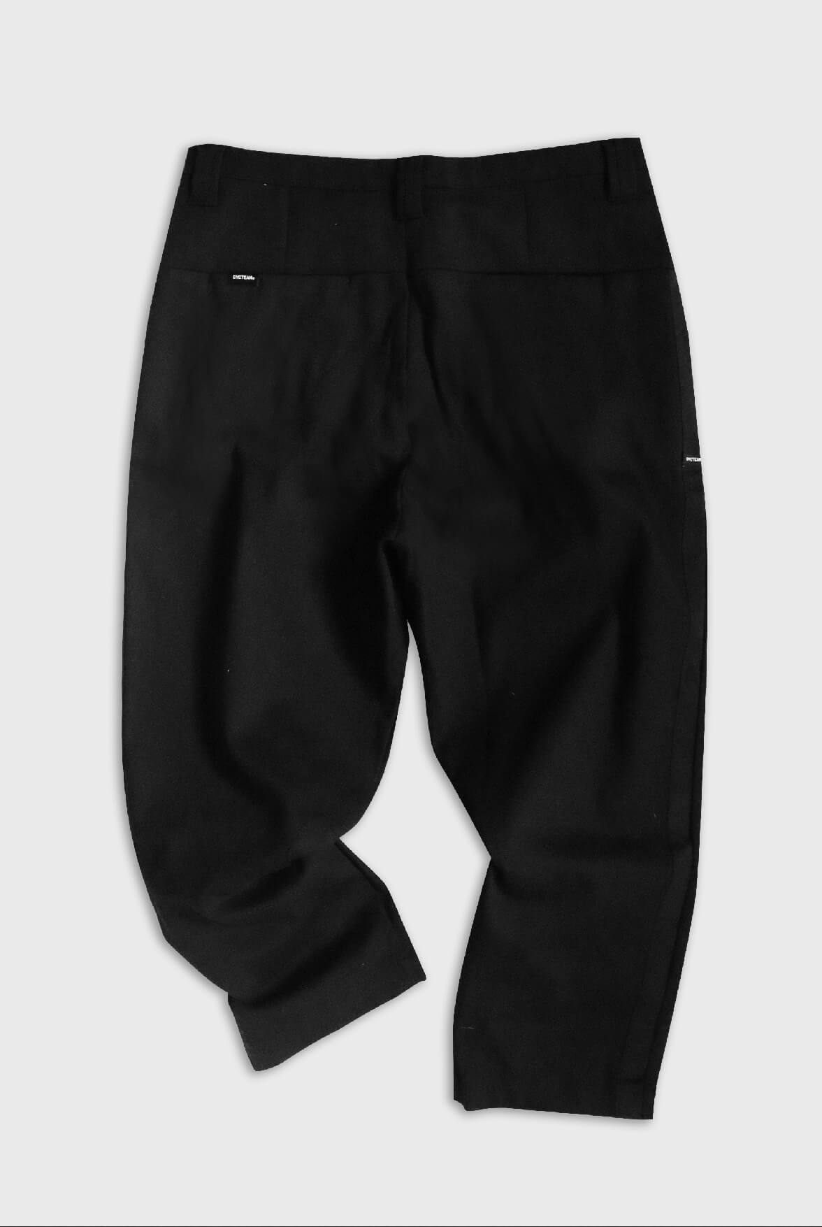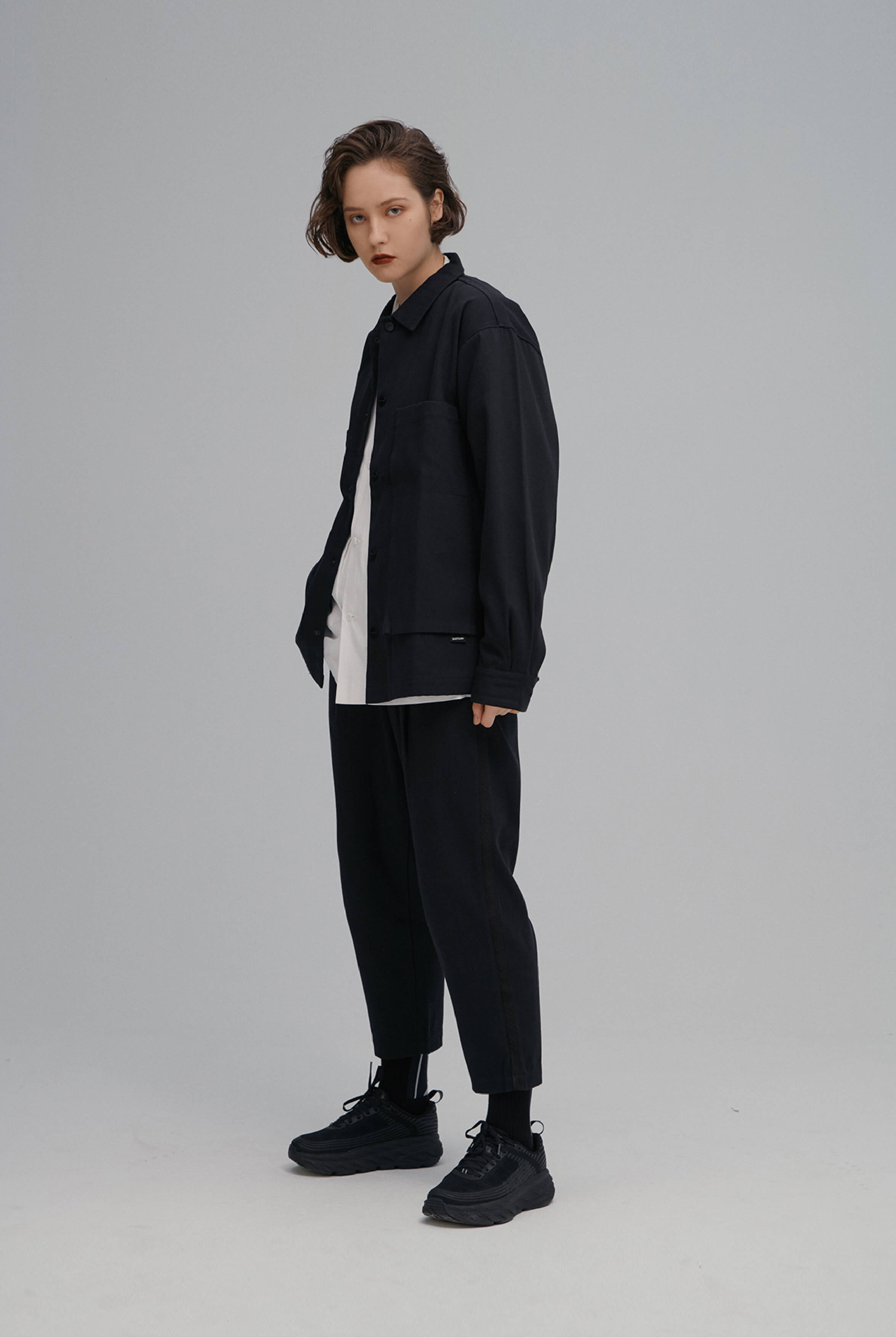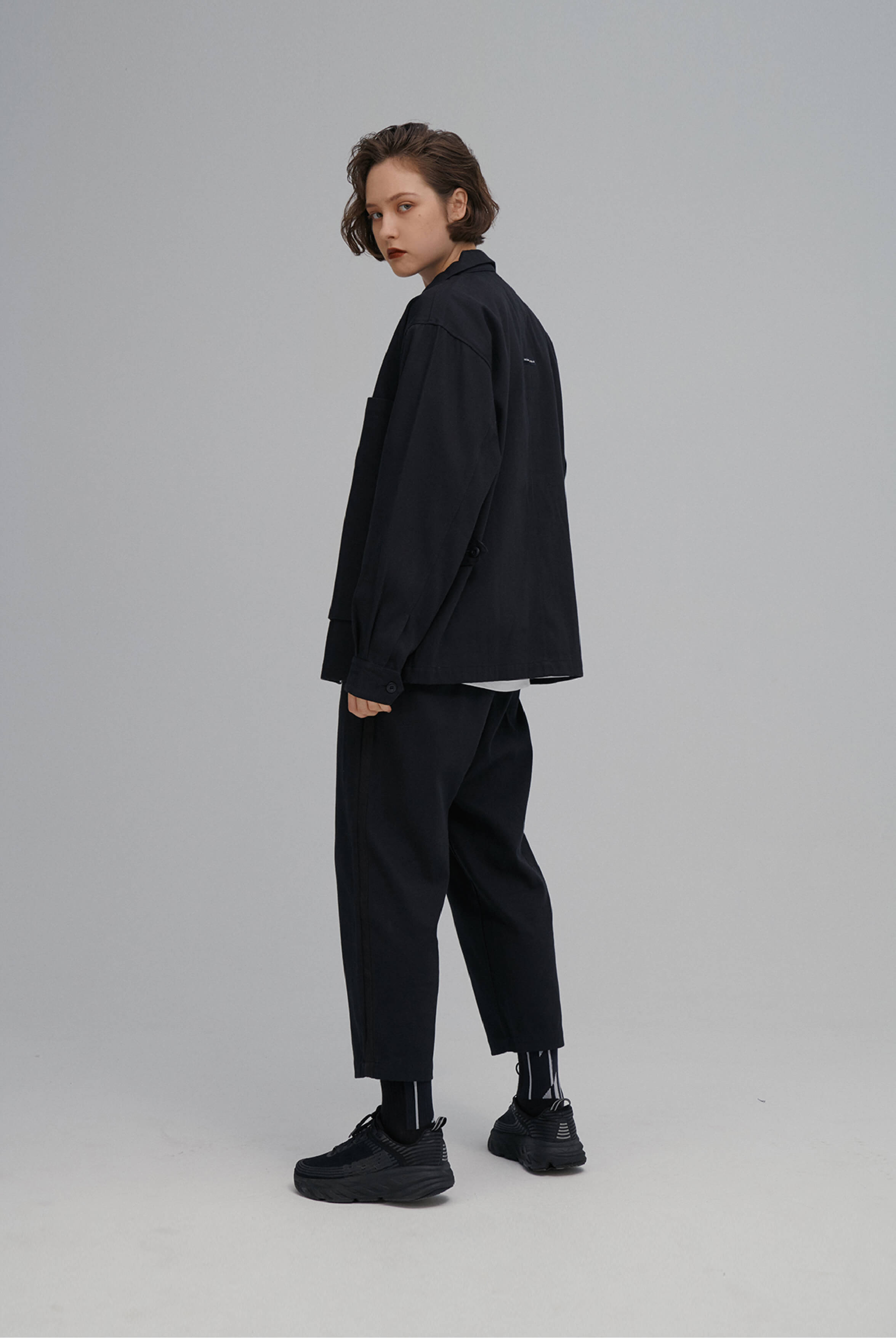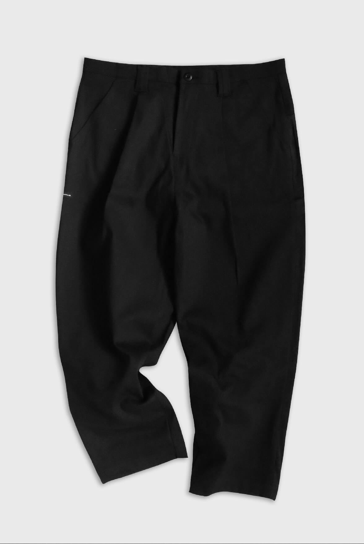 - 寬鬆九分褲型,兩側黑色LOGO緹花面料拼接。