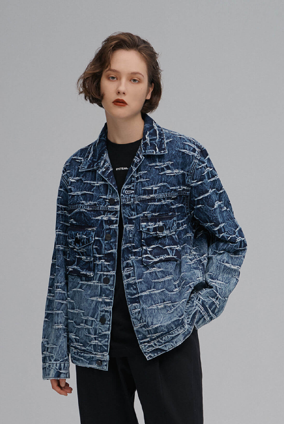 - 寬身版型ã€èƒ¸å‰å…©å´å…©è“‹è¢‹ã€è¡£è¥¬å…©å´æ’袋。