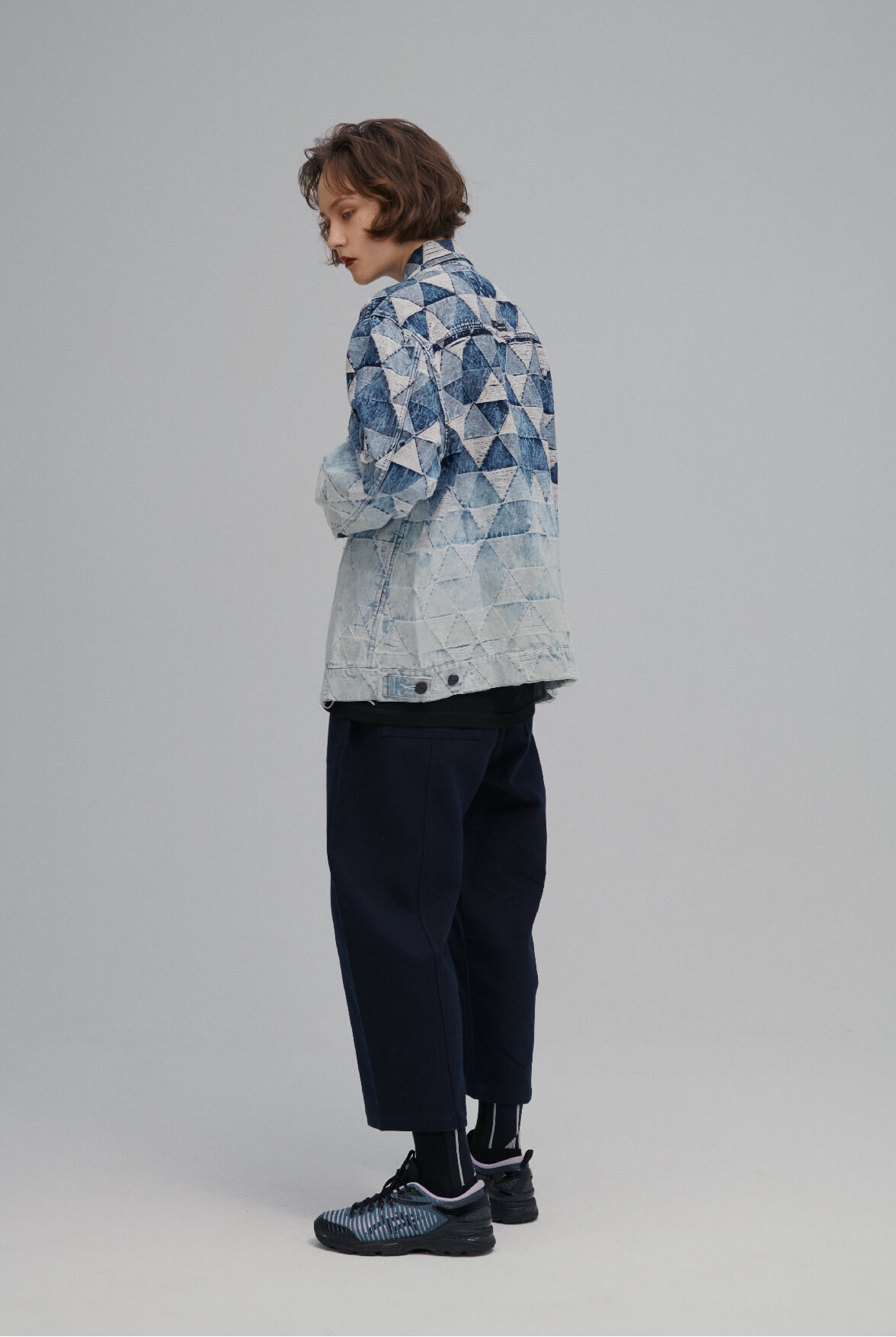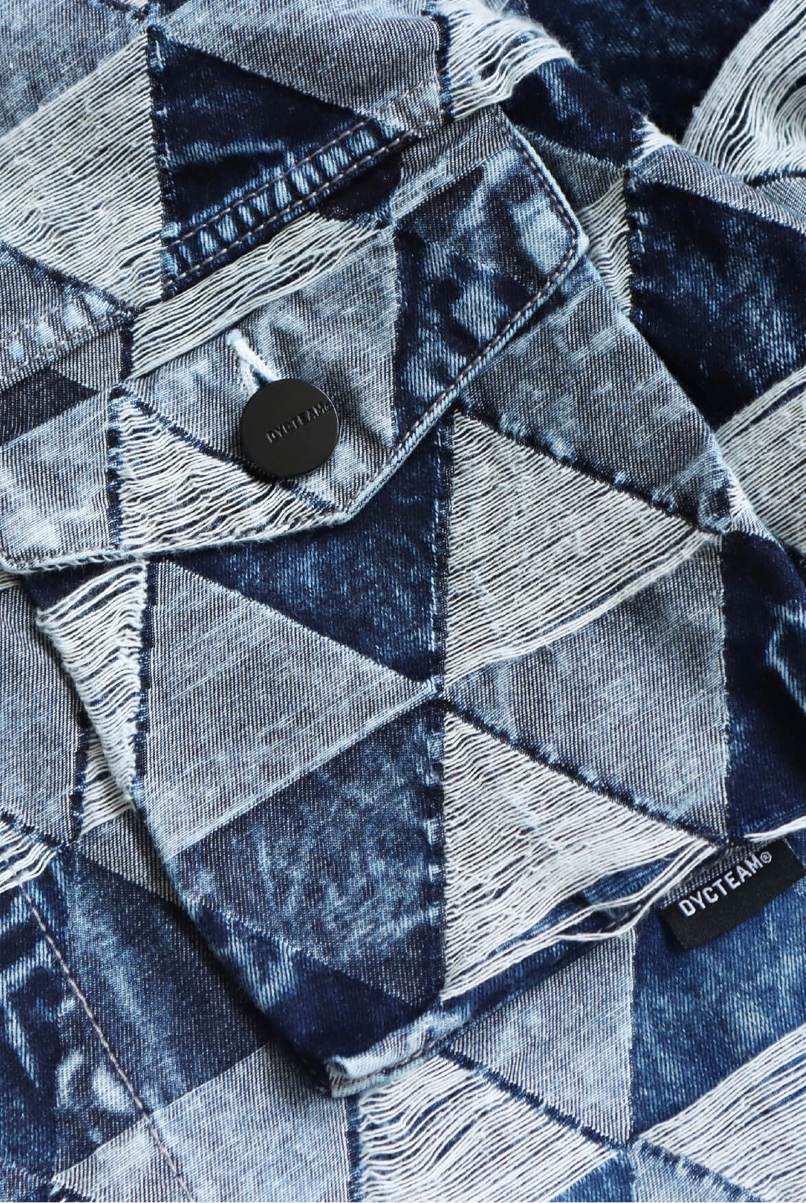 - ç¶“å…¸ä¸‰è§’ç·¹èŠ±å¤–å¥—ï¼Œæ¼¸æŸ“æ°´æ´—åŠ å·¥ã€‚