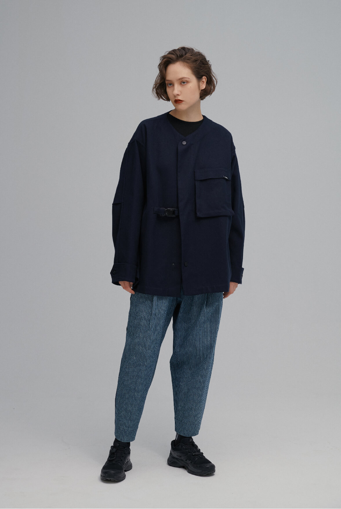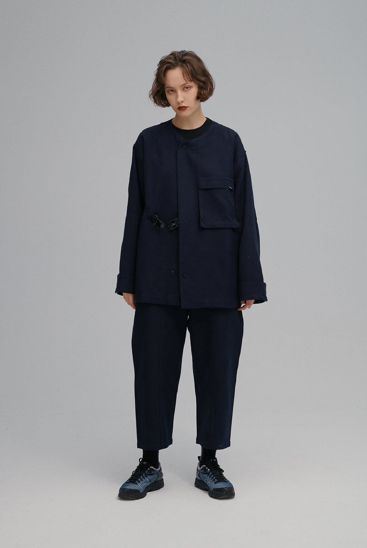 Symbiosis - collarless jacket (navy)