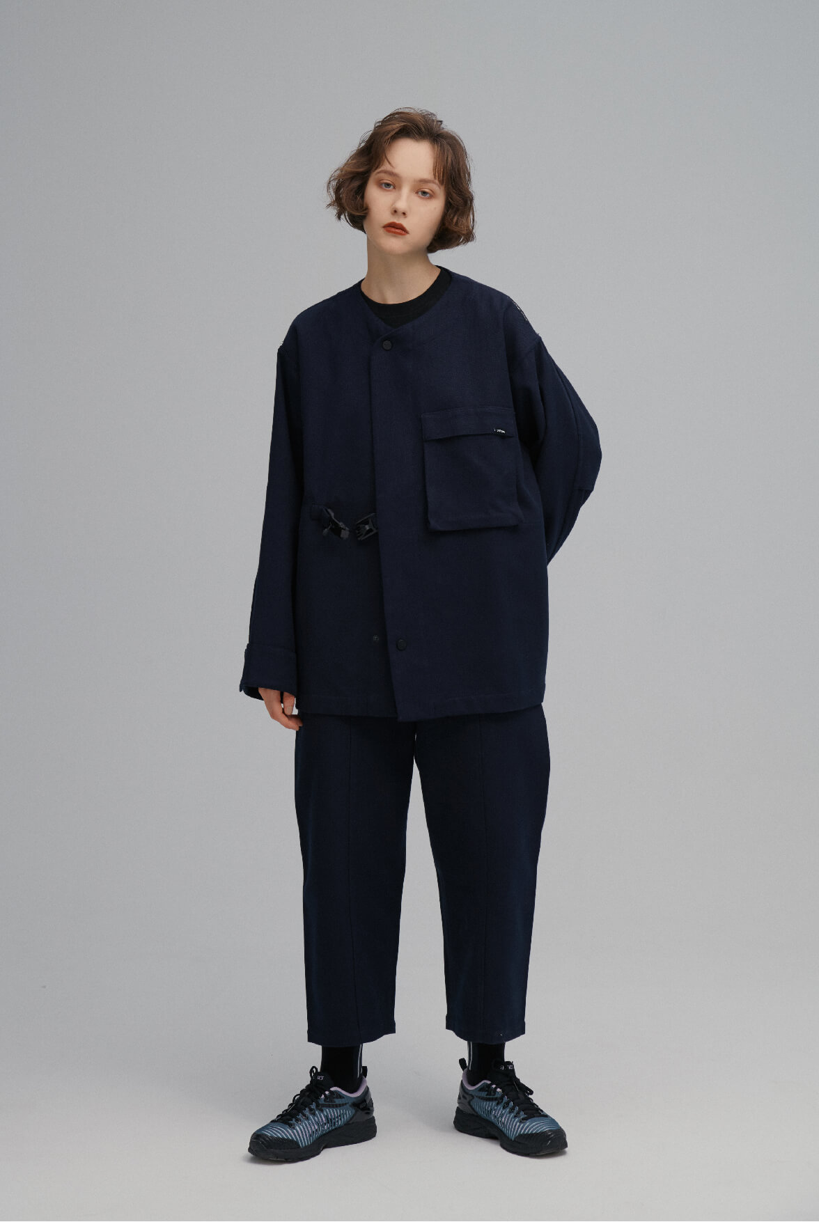 - ç„¡é ˜æ‰£å…·å¤–å¥—ï¼Œç‰ˆåž‹å¯¬é¬†ã€‚