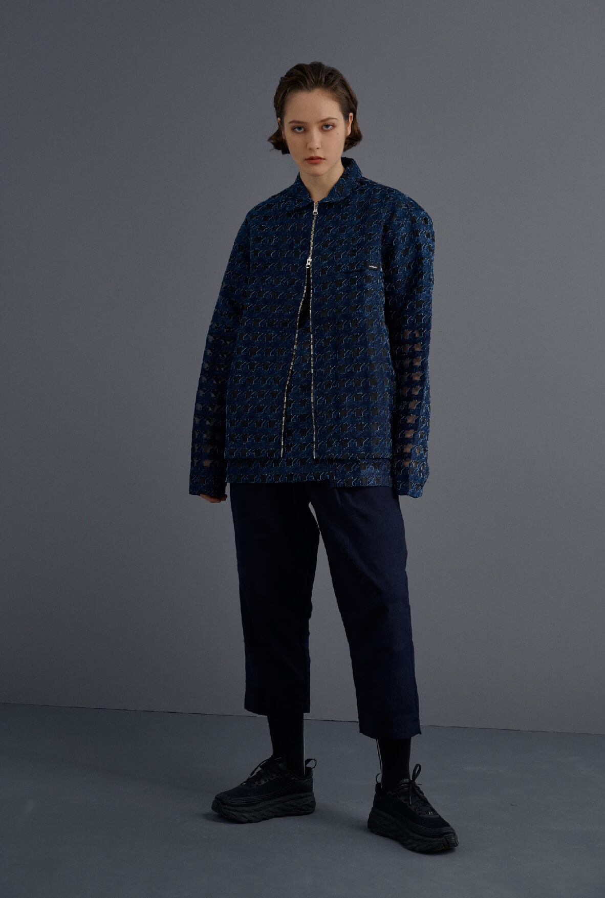 (DIST.) - see-through Houndstooth pattern Jacquard jacket