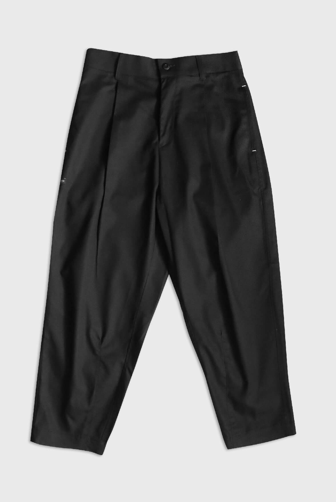 - 褲腳打褶寬éŒè¤²ï¼Œä¸æ€§ç‰ˆåž‹ï¼Œç”·å¥³å…±ç©¿ã€‚