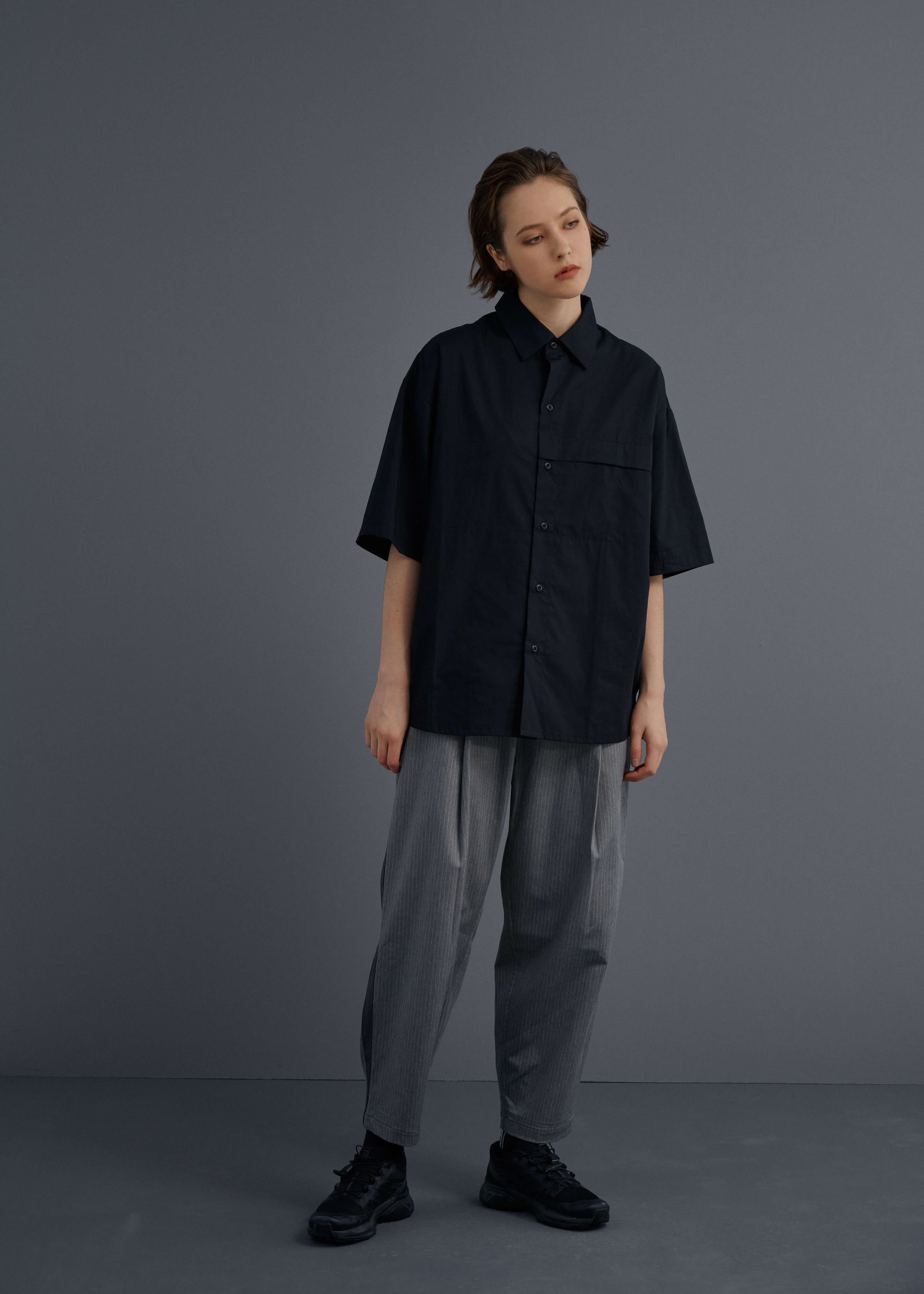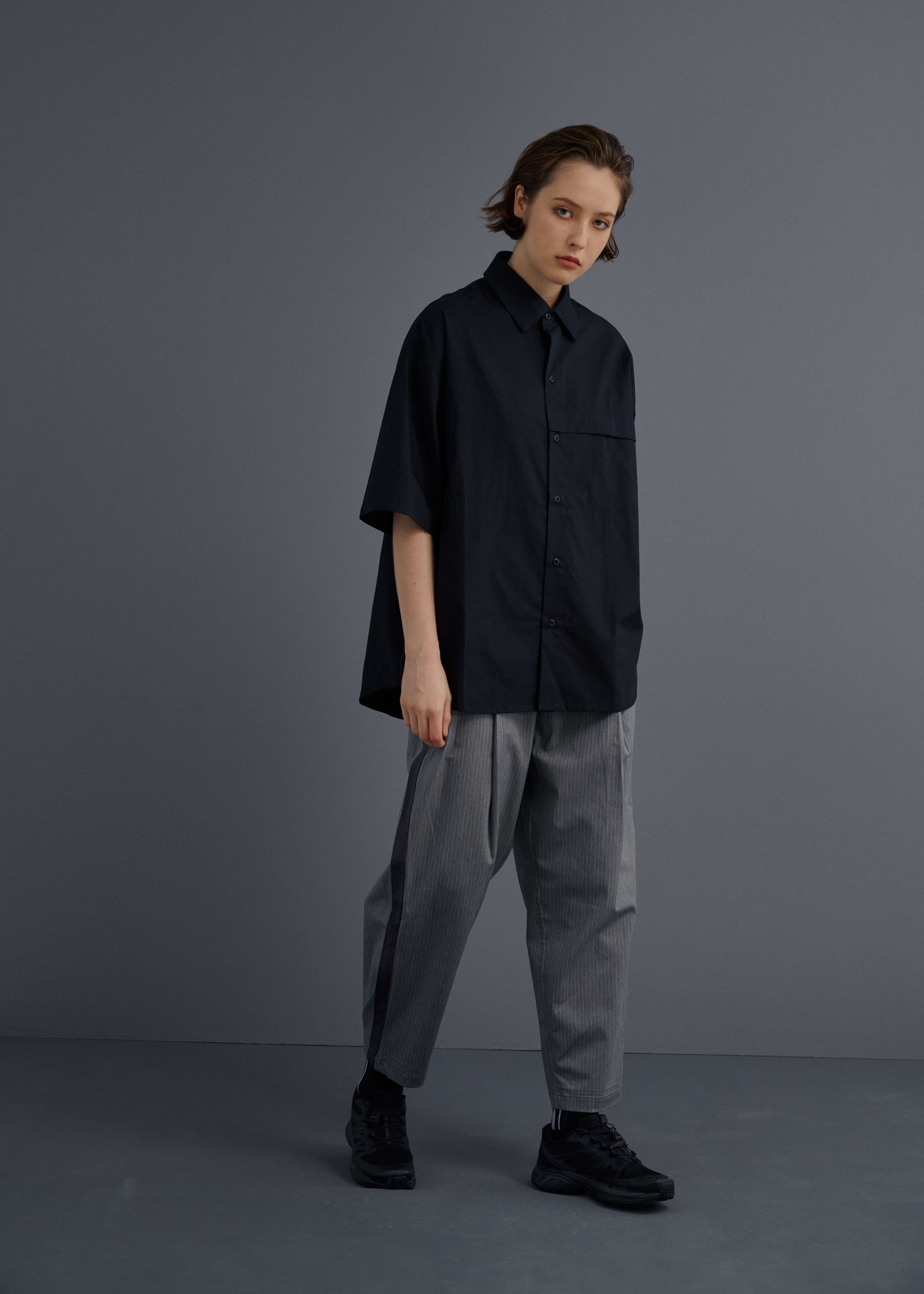 - 簡約有機棉寬版襯衫。