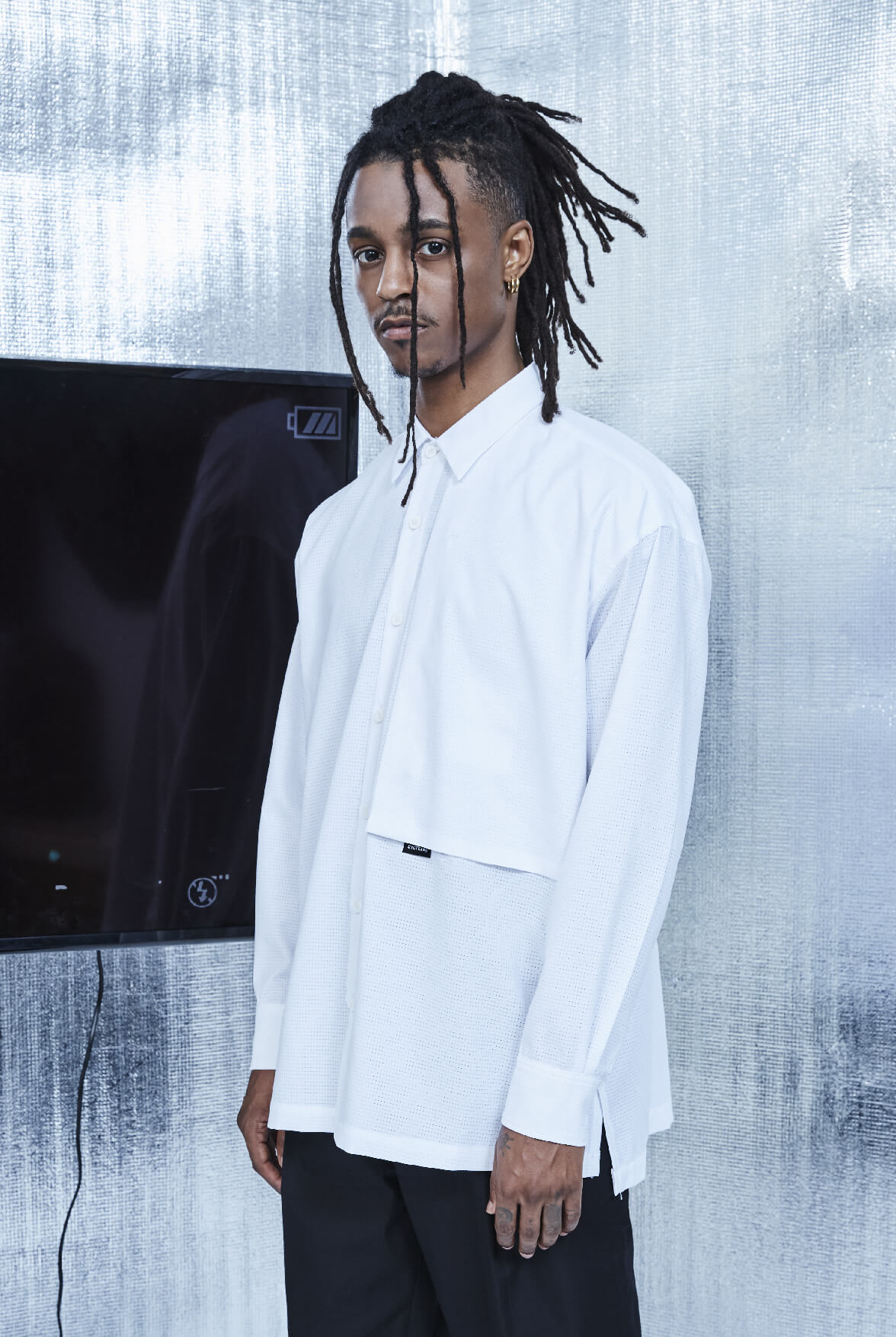 - 微寬版長袖襯衫。