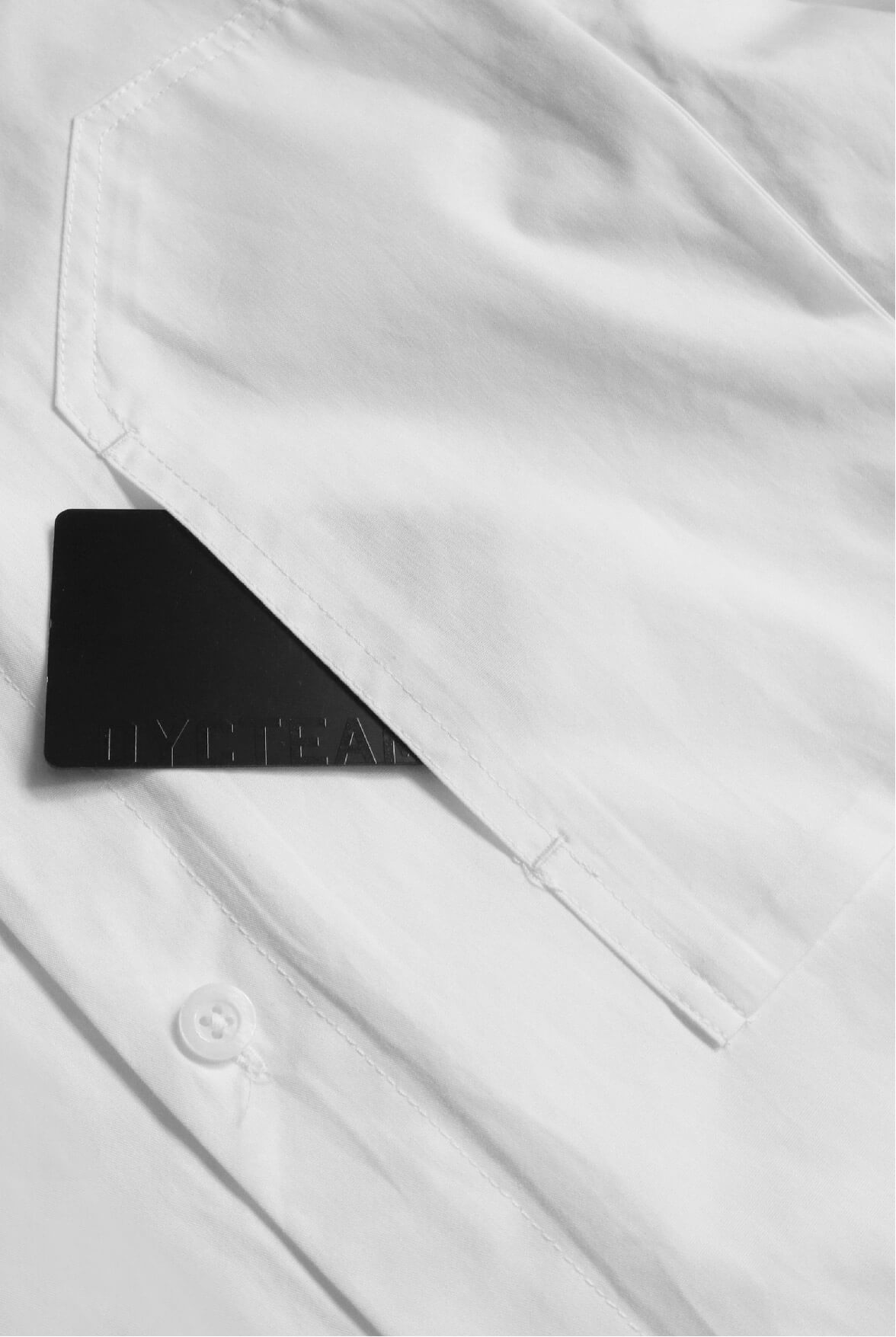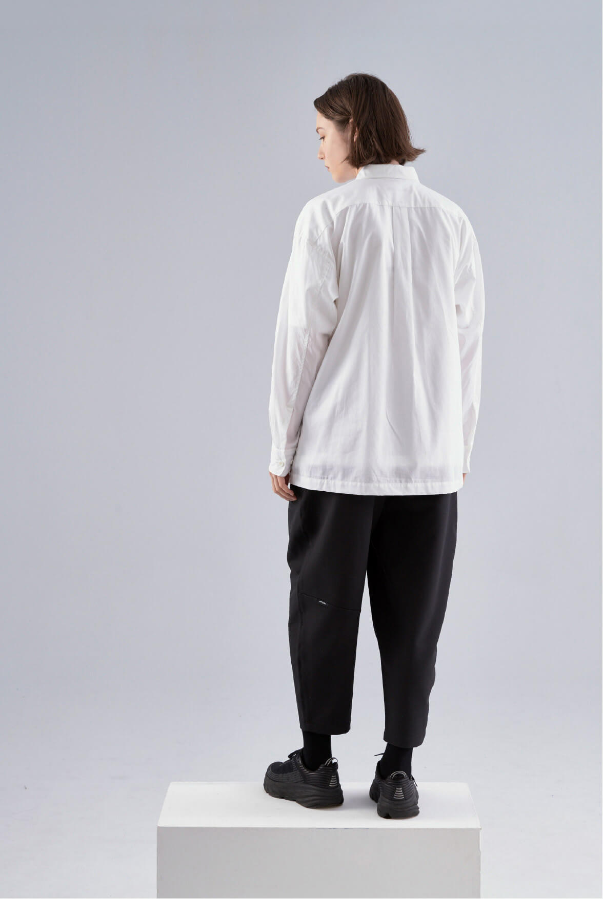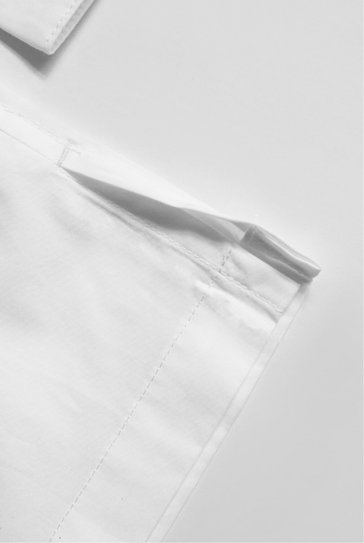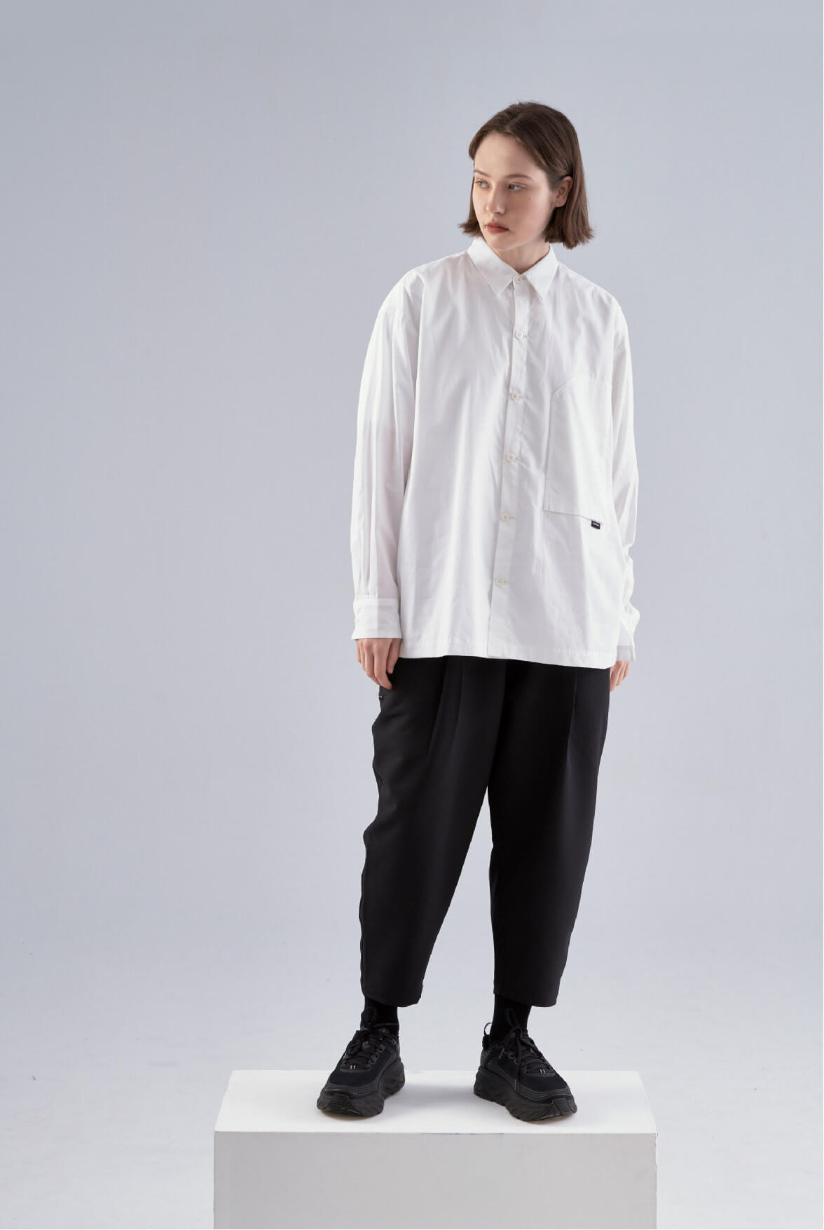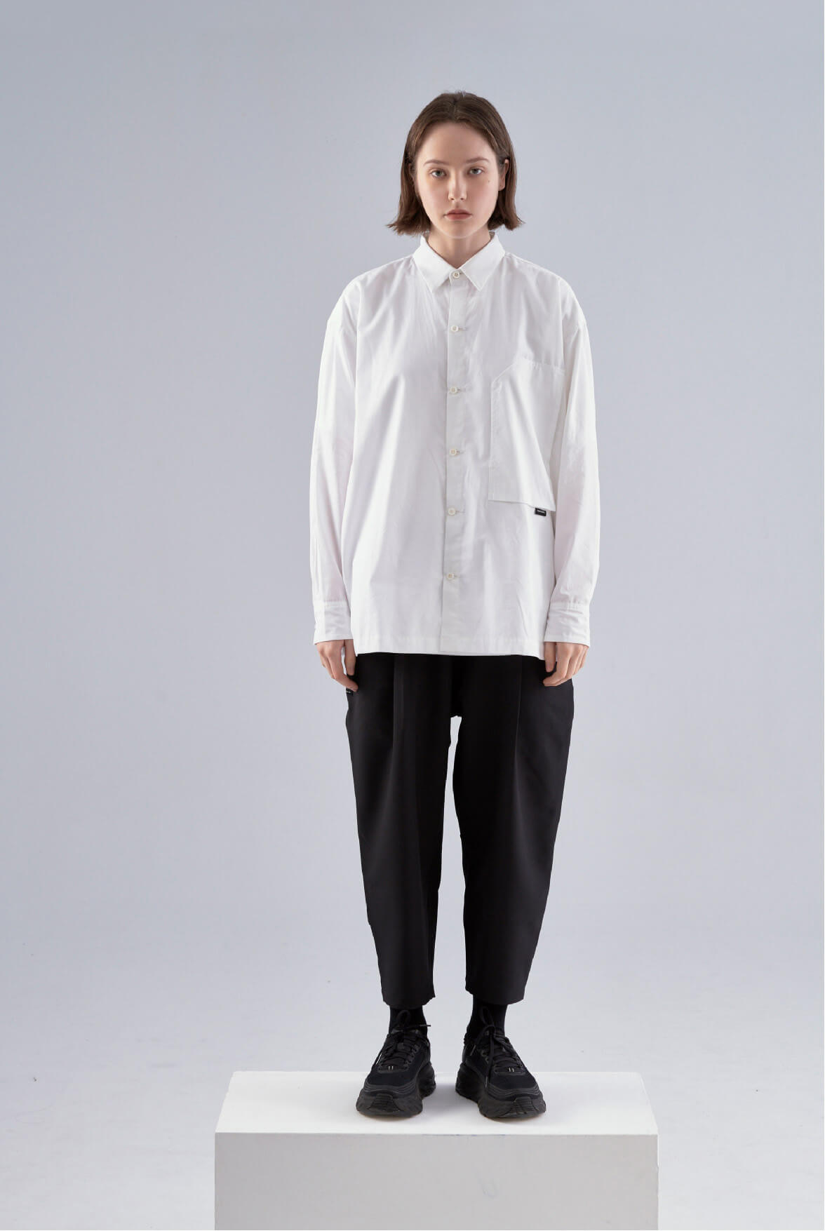 - 左胸斜角å´é–‹å£å¤§å£è¢‹è¨è¨ˆã€ä¸‹æ–¹é»‘色LOGOå°æ¨™ã€‚