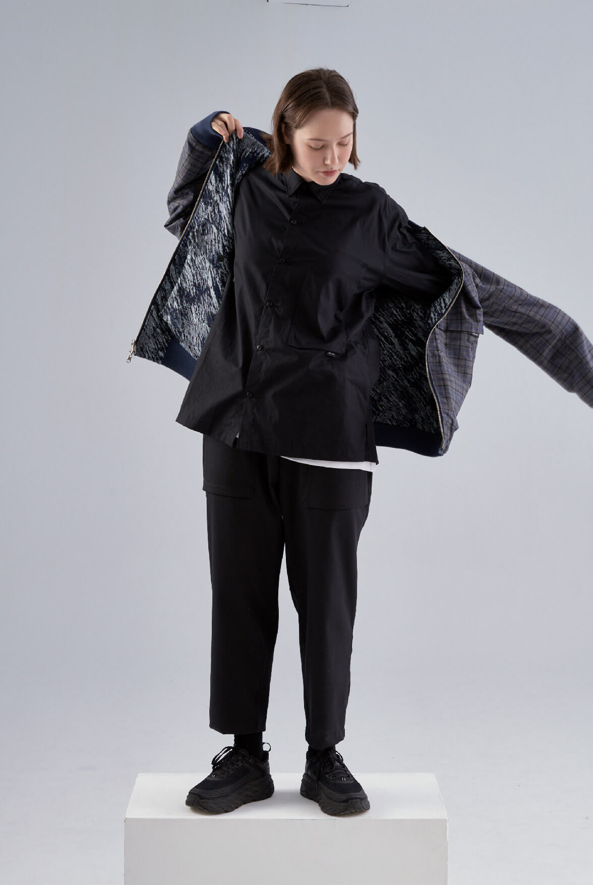 RE:FORM - Earth pattern reversible bomber jacket (blue)