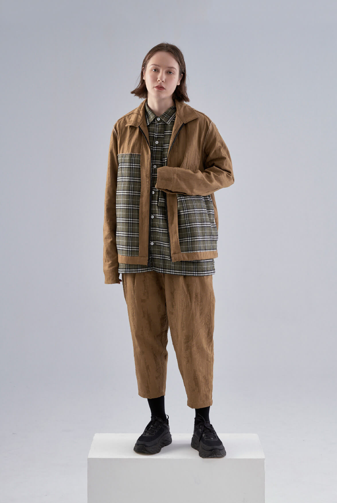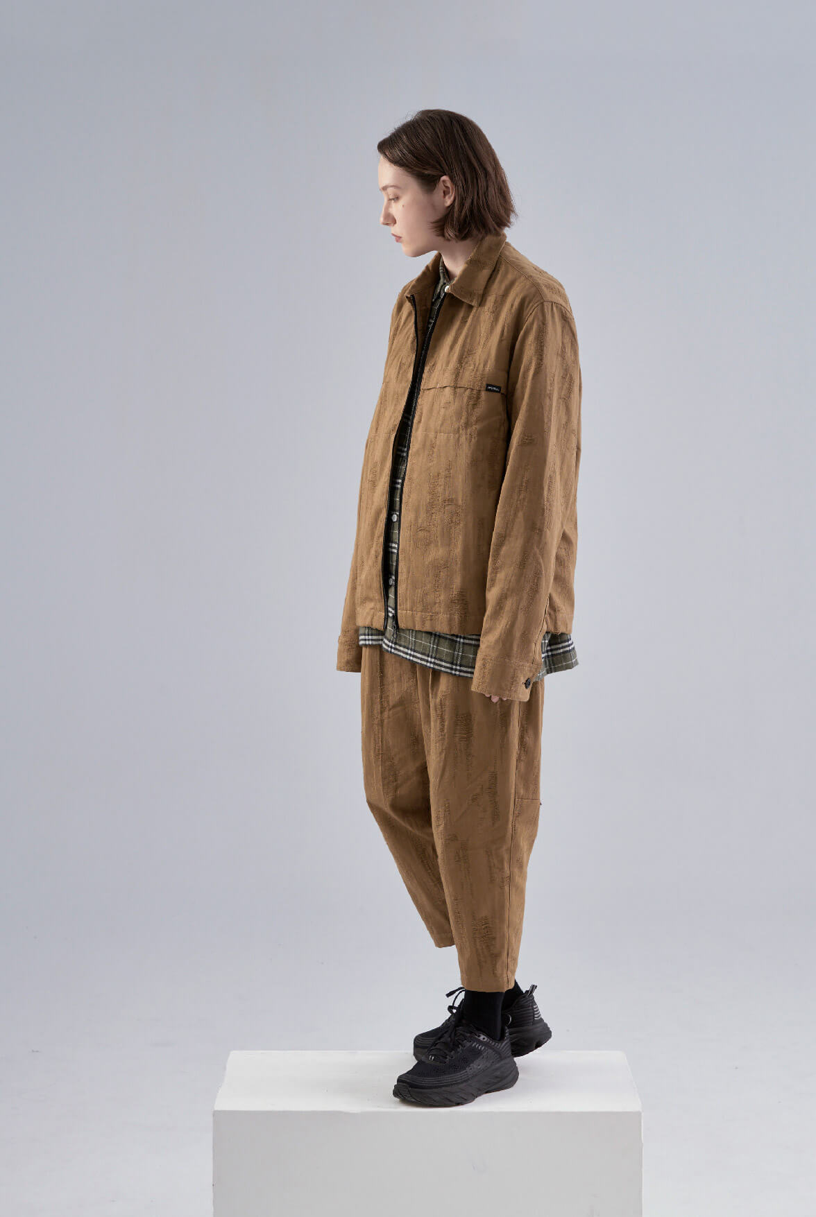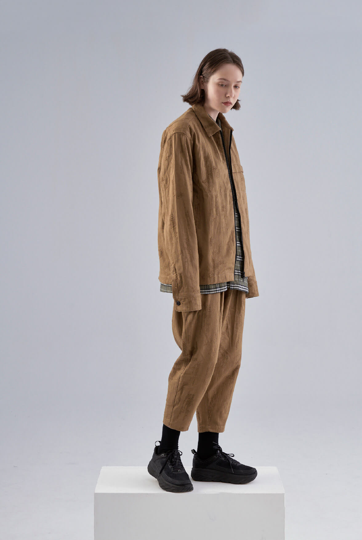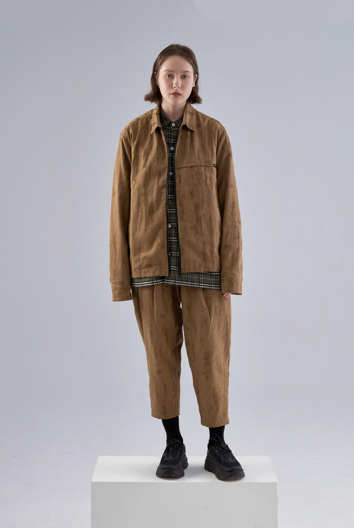 RE:FORM - Brush pattern zip-up shirt (khaki)