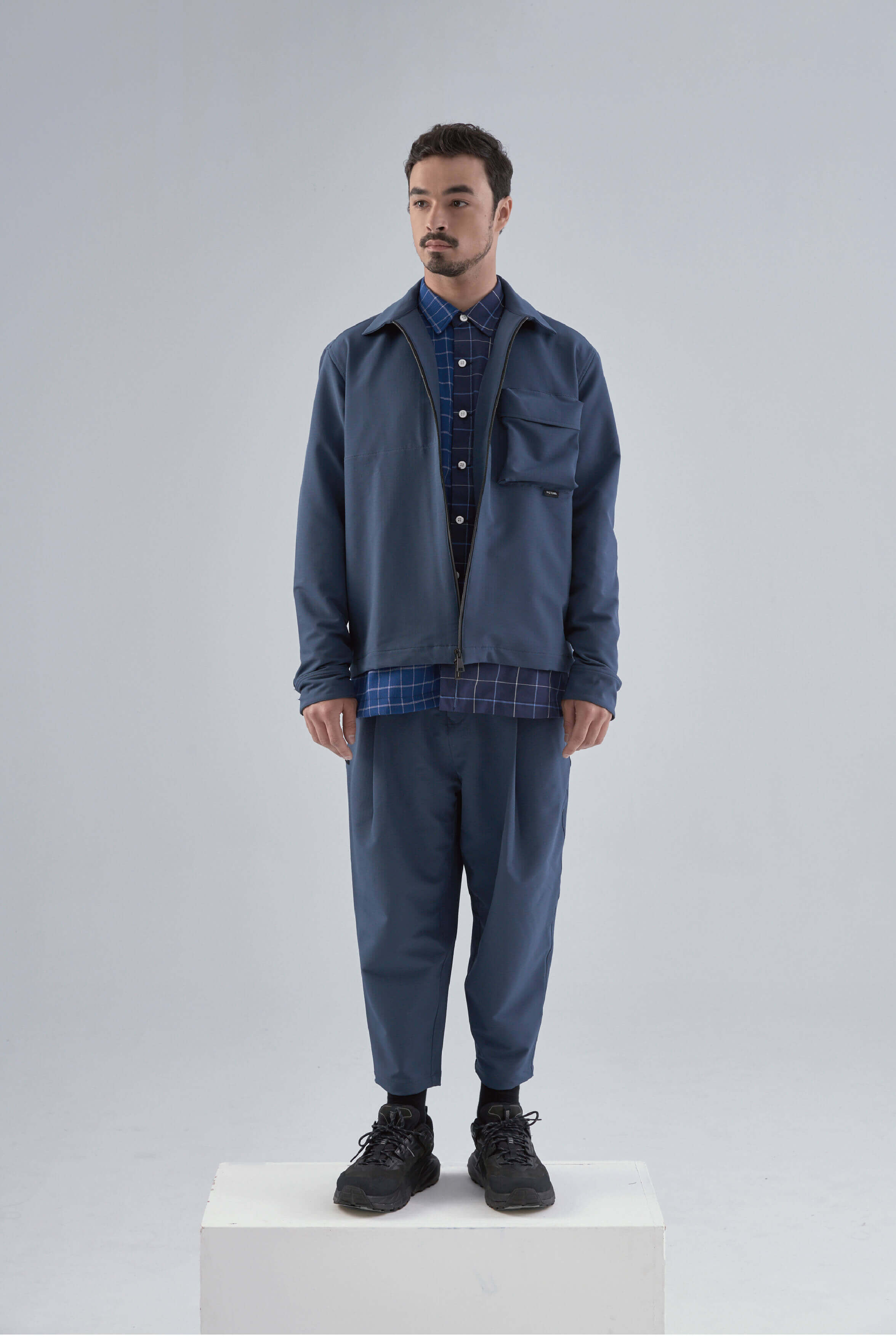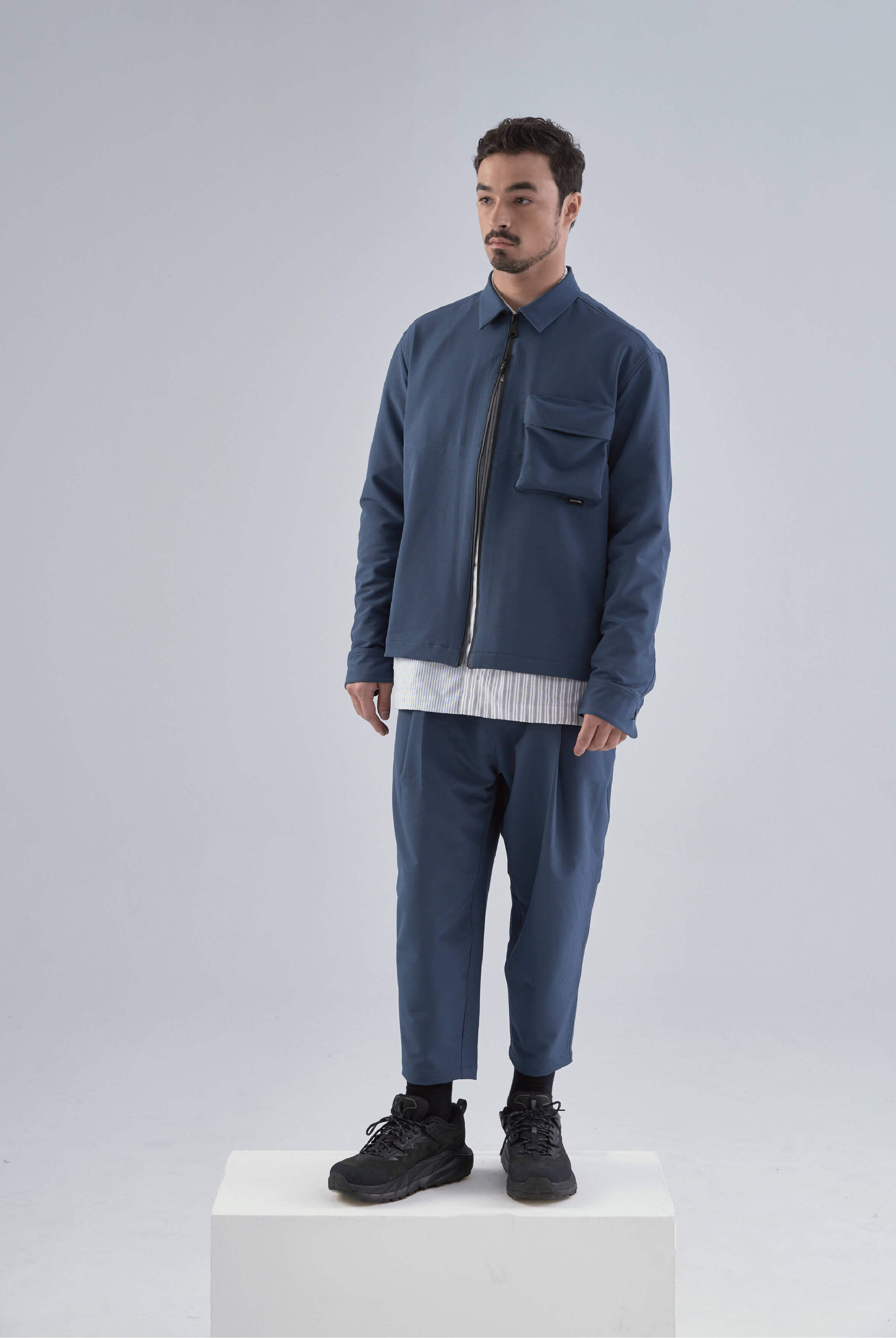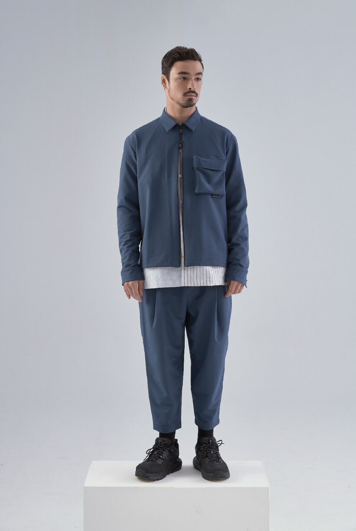 RE:FORM - Patch pocket zip-up shirt (blue)