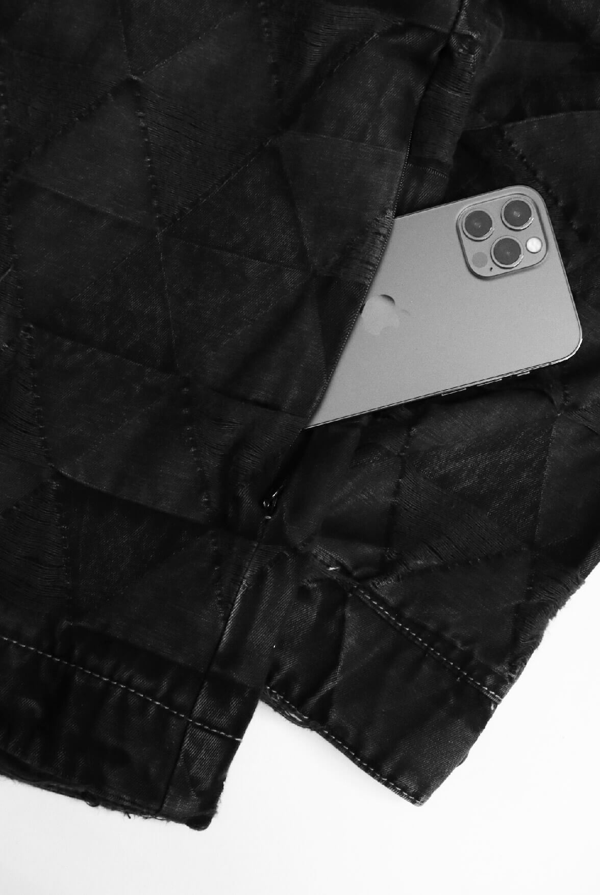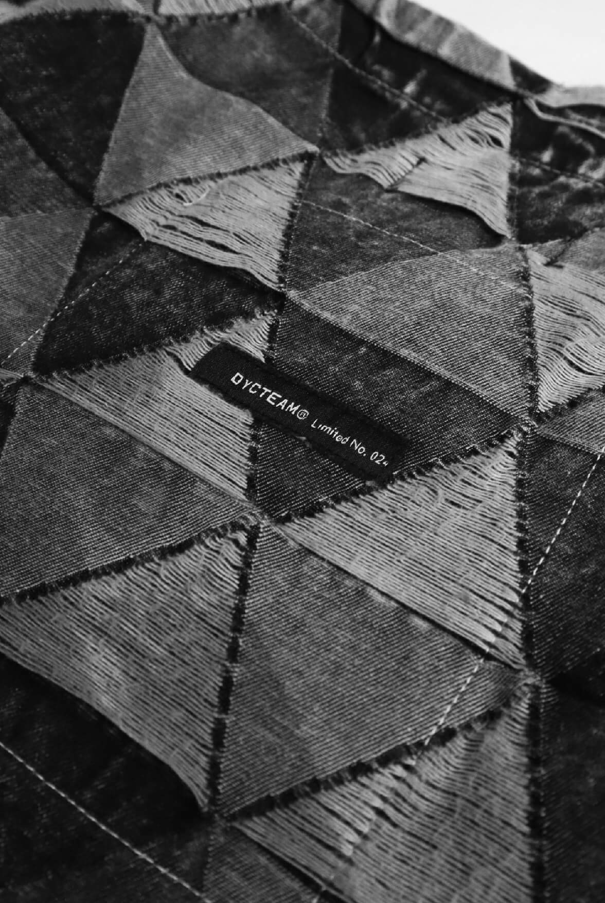 - ä¸‰è§’ç·¹èŠ±ä¸¹å¯§é¢æ–™ï¼Œç‰¹æ®Šé»‘色漸層套染。