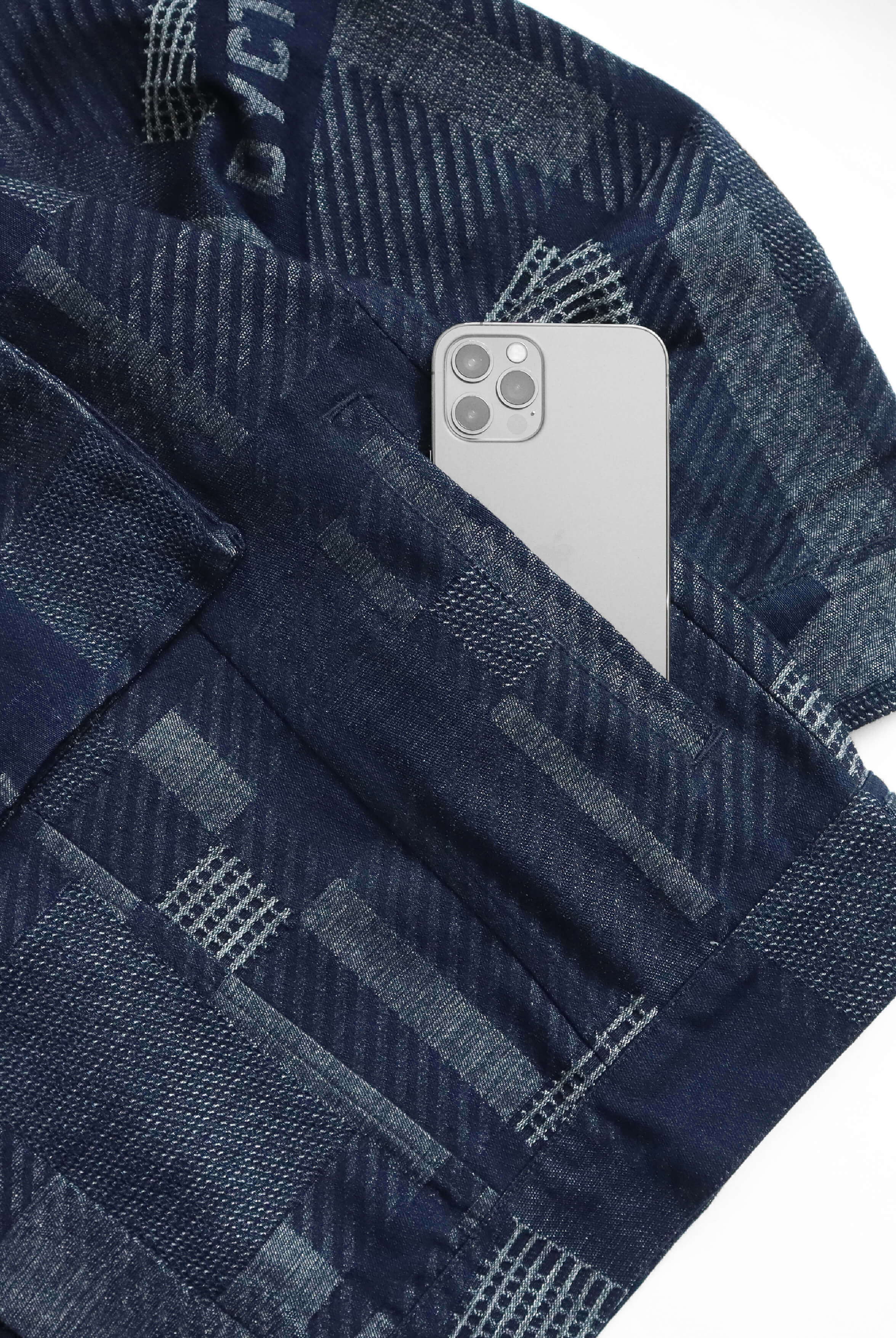 material quality | ECO-FRIENDLY - JACQUARD DENIM 56% COTTON 44% RECYCLED POLYESTER