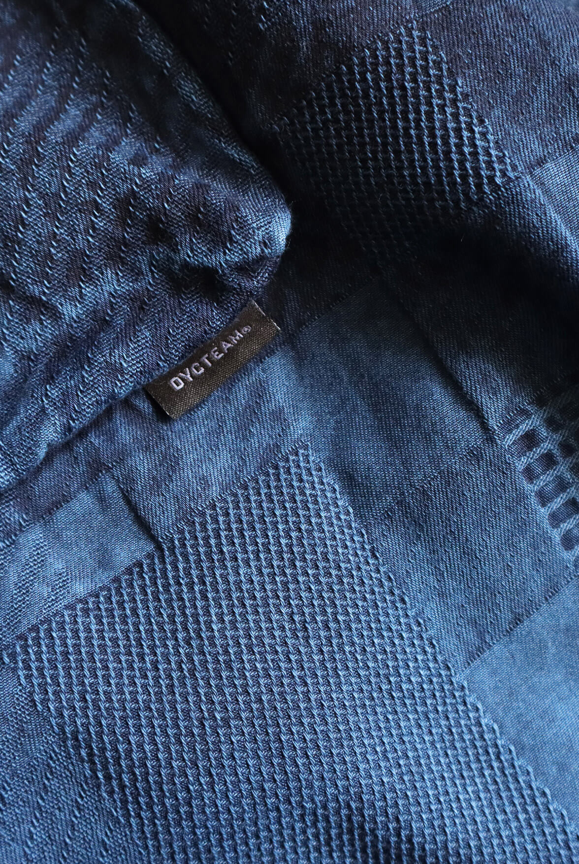 將 DYCTEAM 品牌 LOGO 視為一段程式碼,織入格紋。