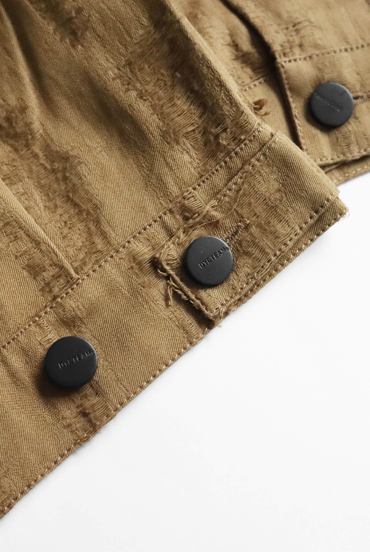- 緹花丹寧ç†åˆ·ç´‹ï¼Œæœ‰æ©Ÿæ£‰é¢æ–™ã€‚