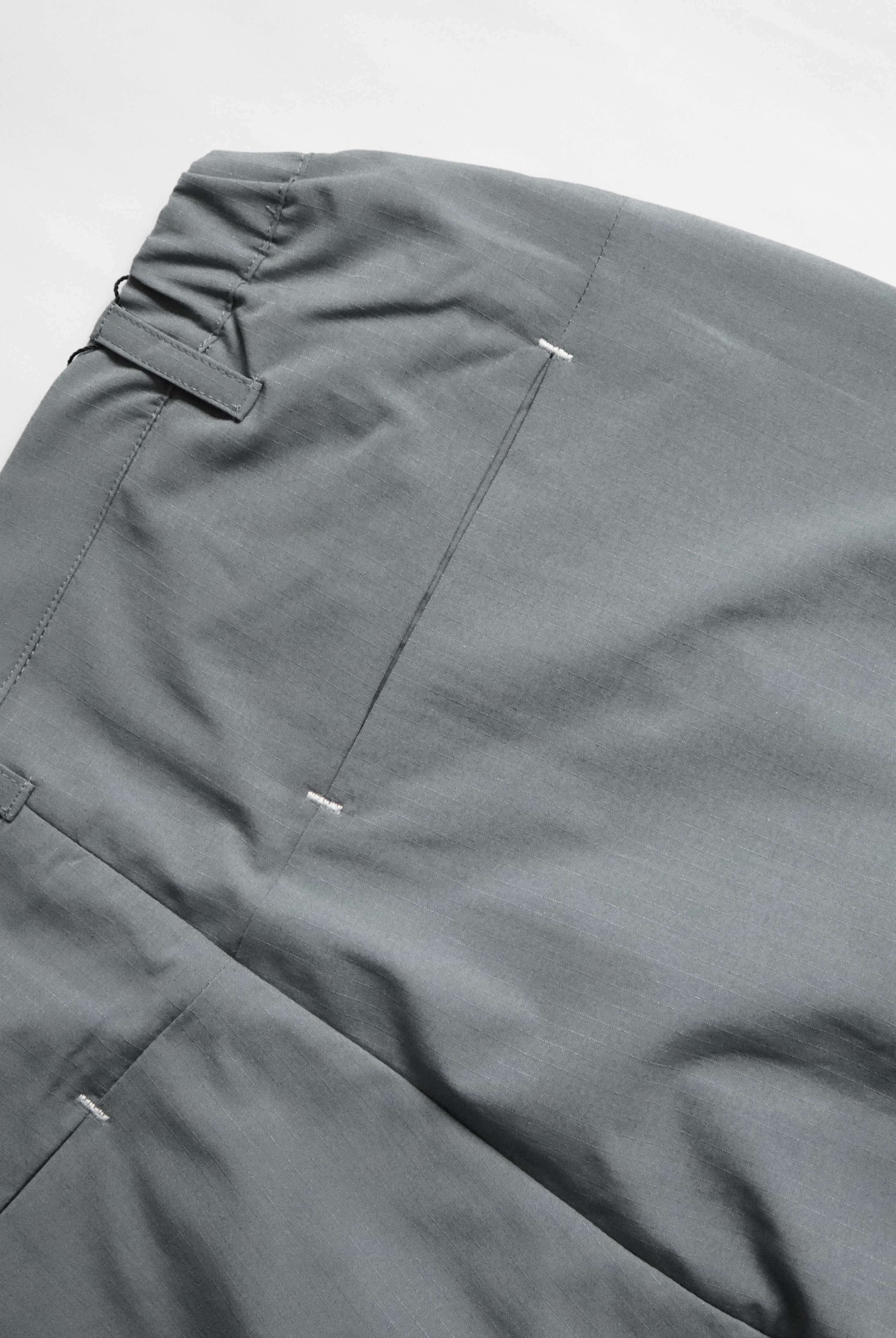 - 寬版八分褲型、腰部2處壓摺線、兩側口袋。