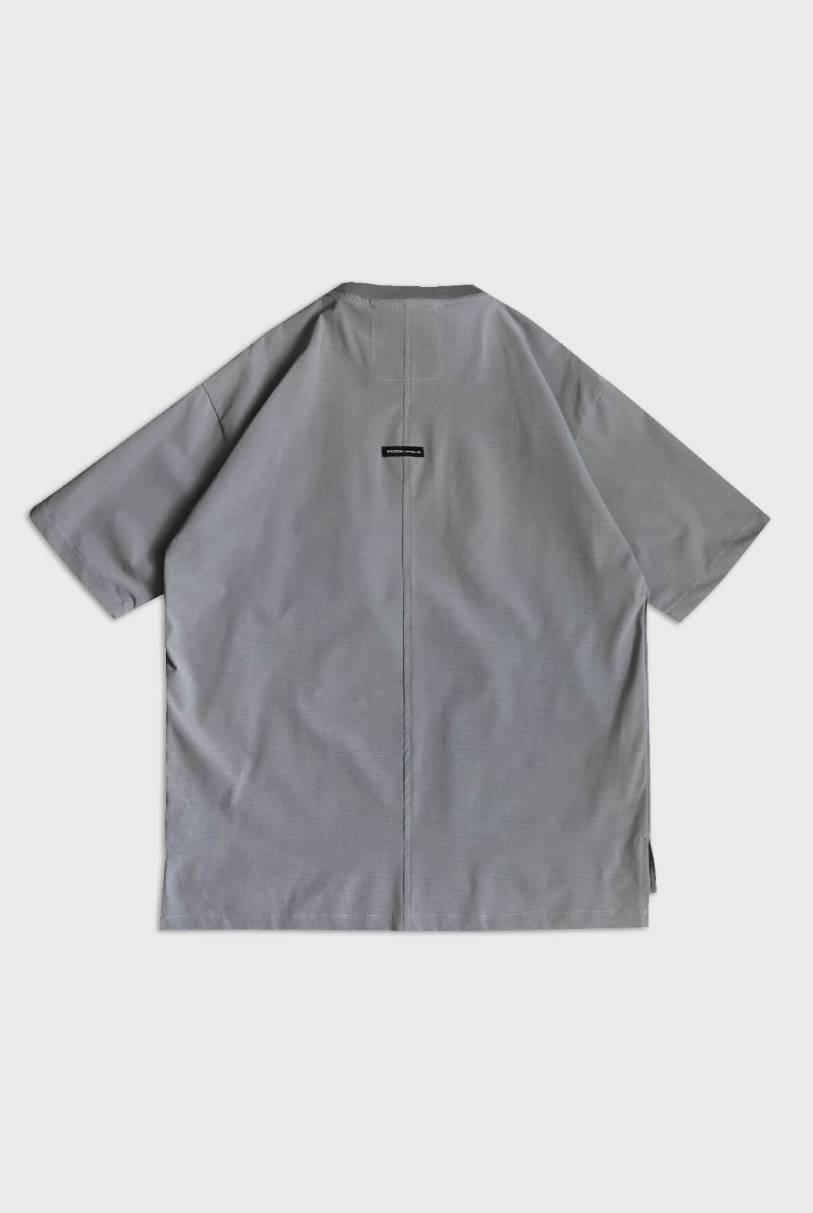 - 寬鬆版è½è‚©äº”分袖ã€å·¦èƒ¸å–®é‚Šå¤§æ‹‰éŠå£è¢‹ã€ä¸‹æ“ºå…©å´é–‹å²”ã€å‰çŸå¾Œé•·ã€‚