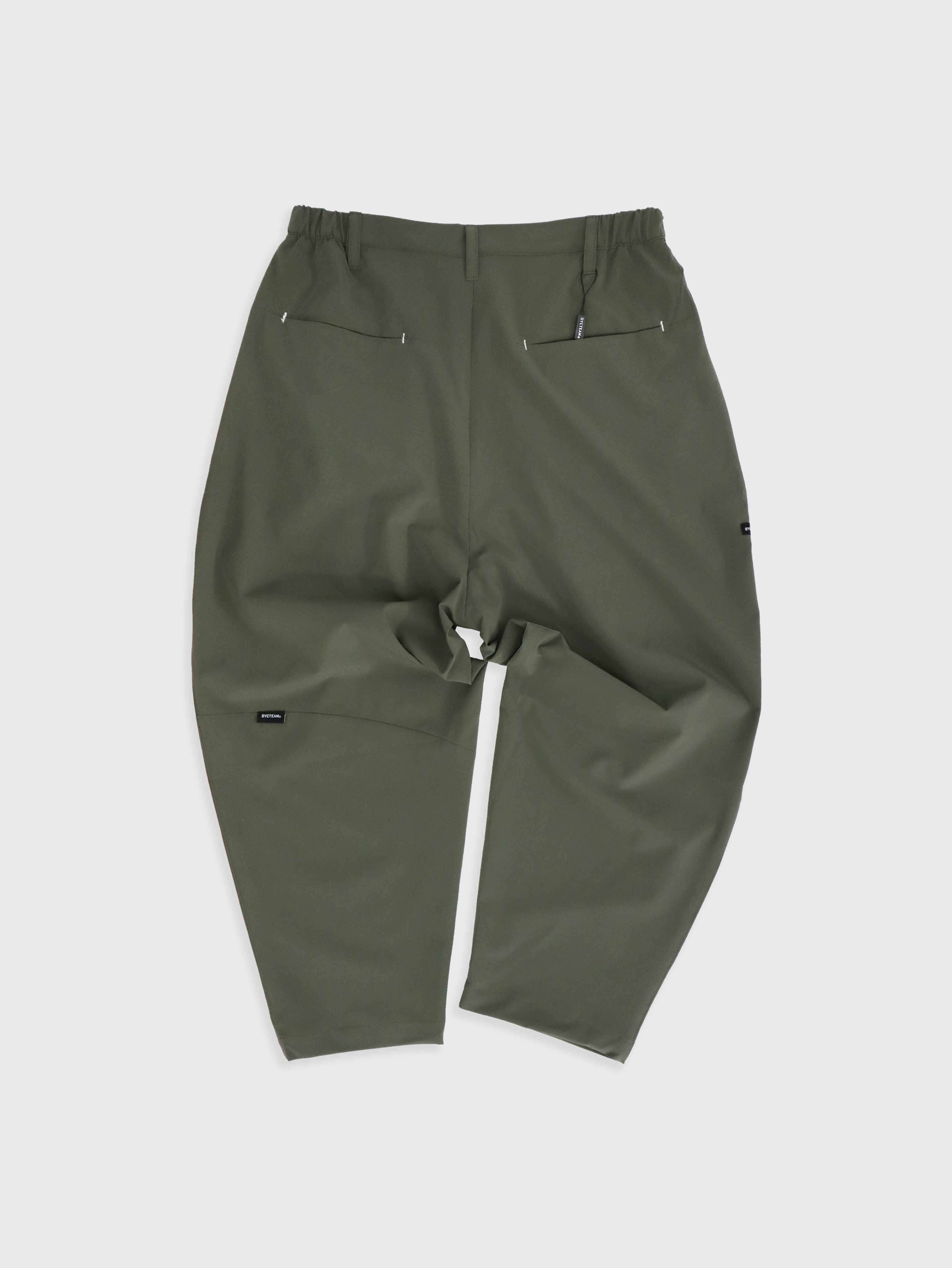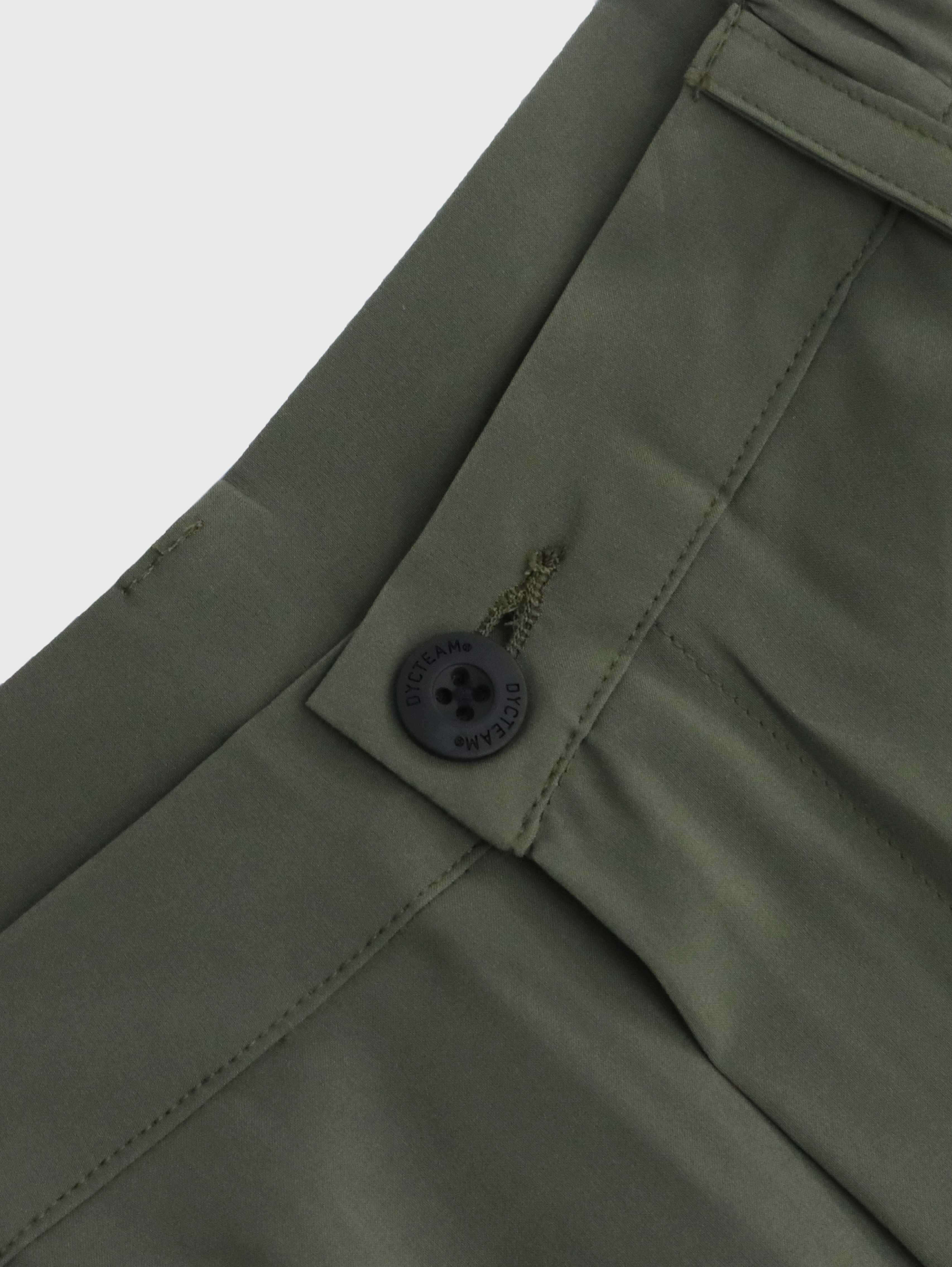 - 寬版八分褲型、腰部2處壓摺線、兩側口袋。
