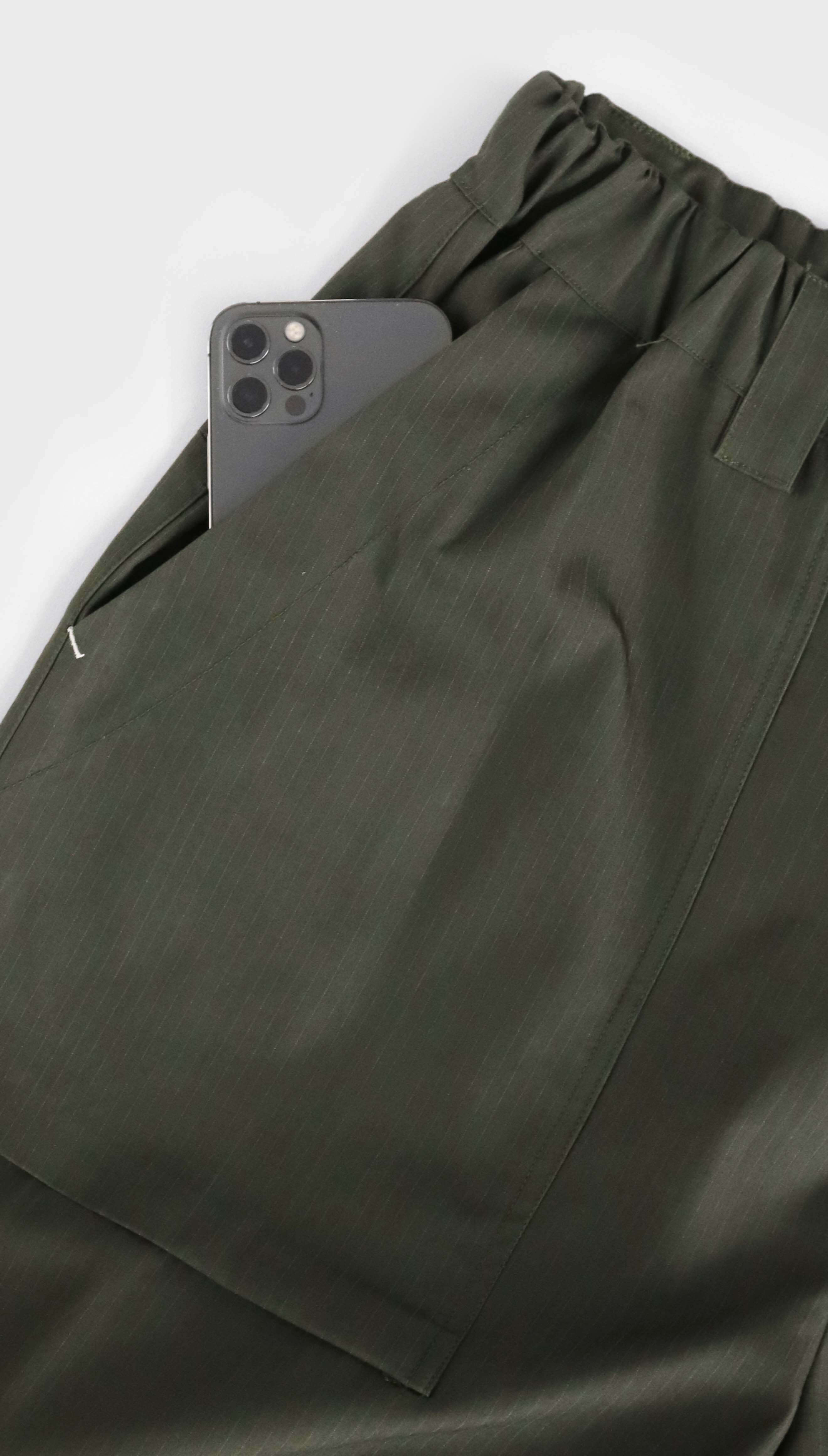 - 方口袋九分錐形褲。