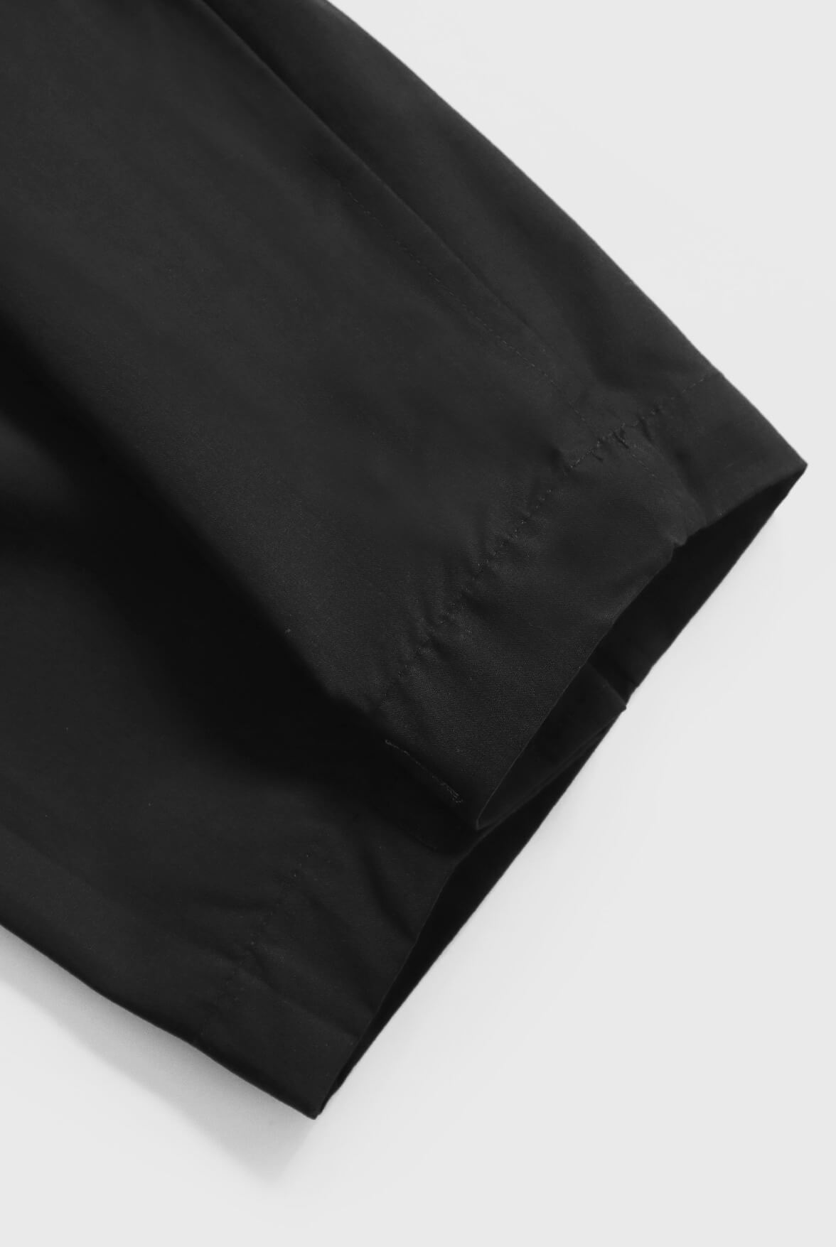 - 細小格紋防潑面料、大口袋八分錐形褲。