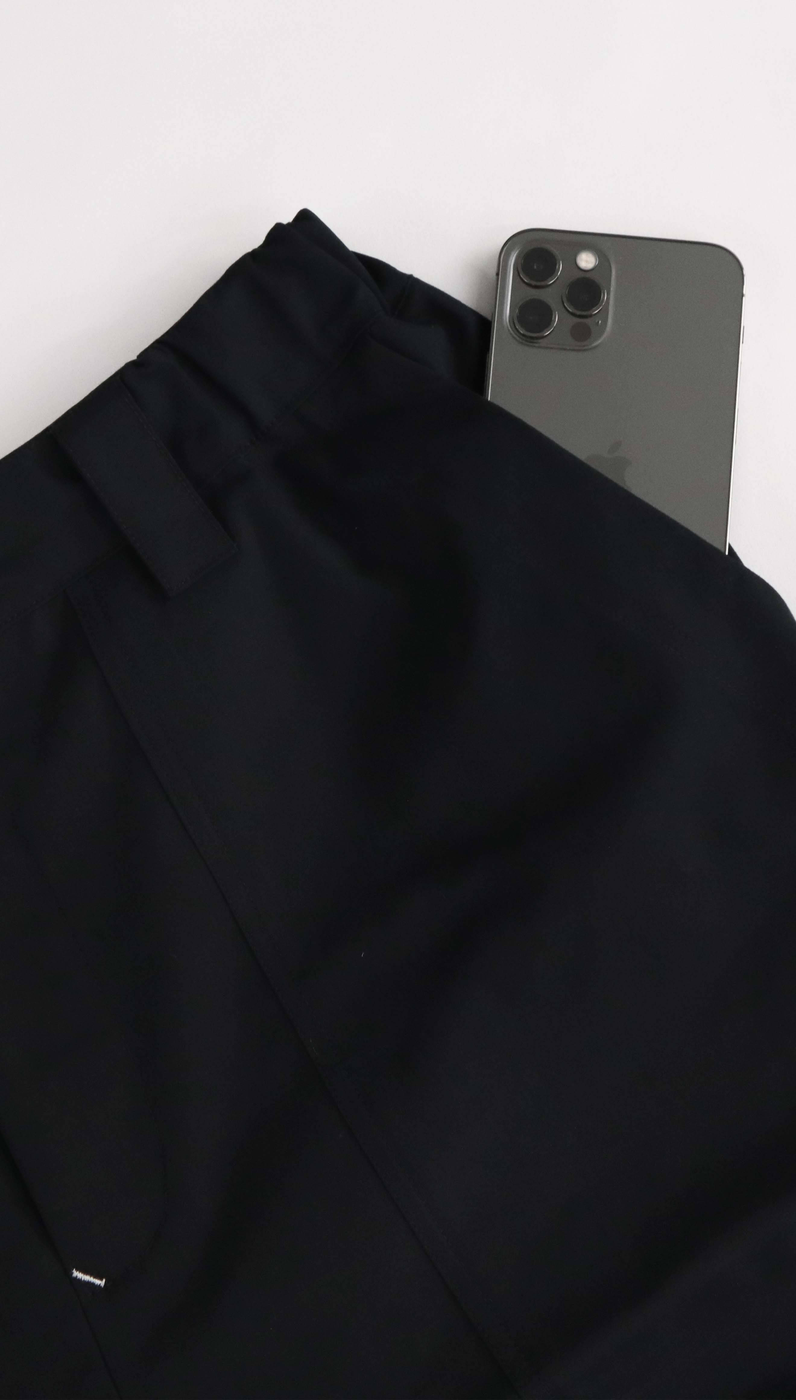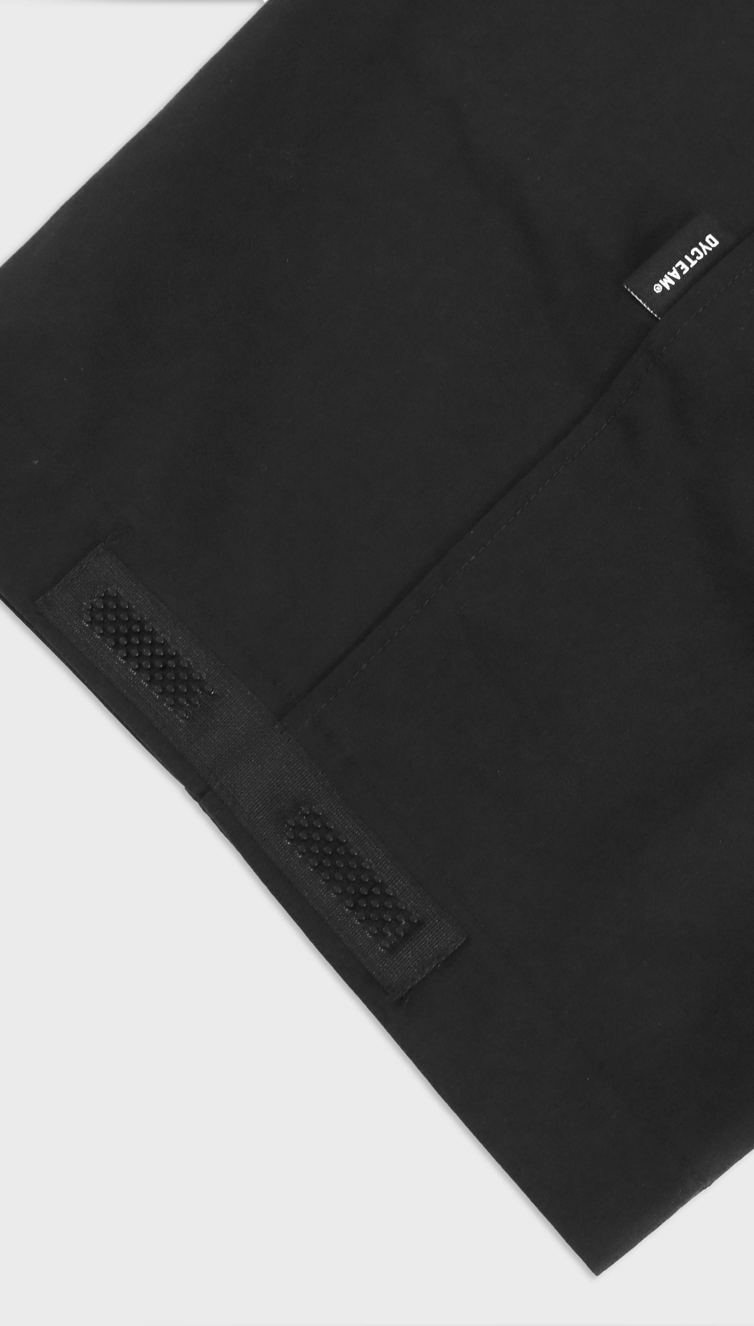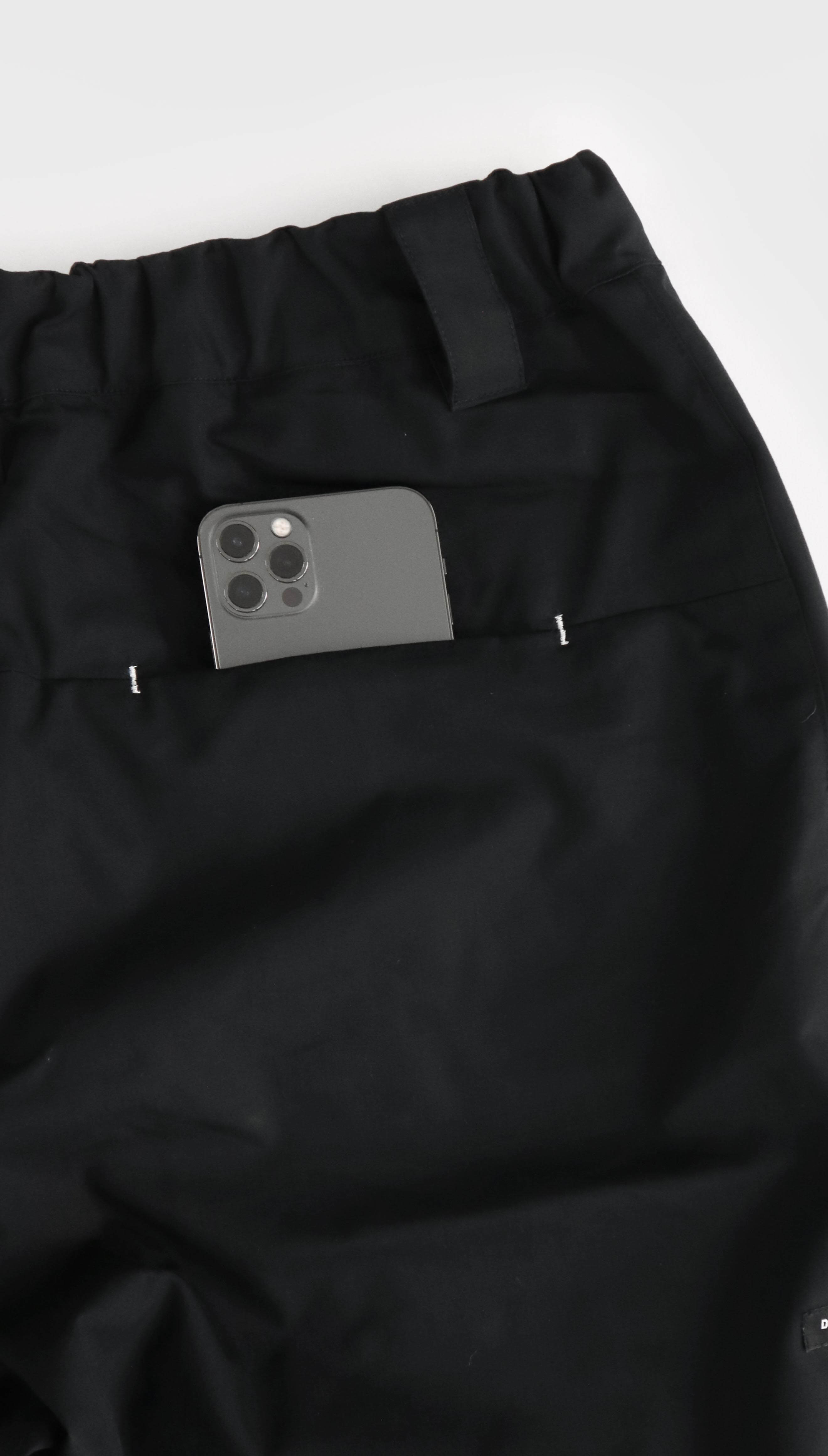- 鬆緊褲頭,多處白色打結線綴飾。