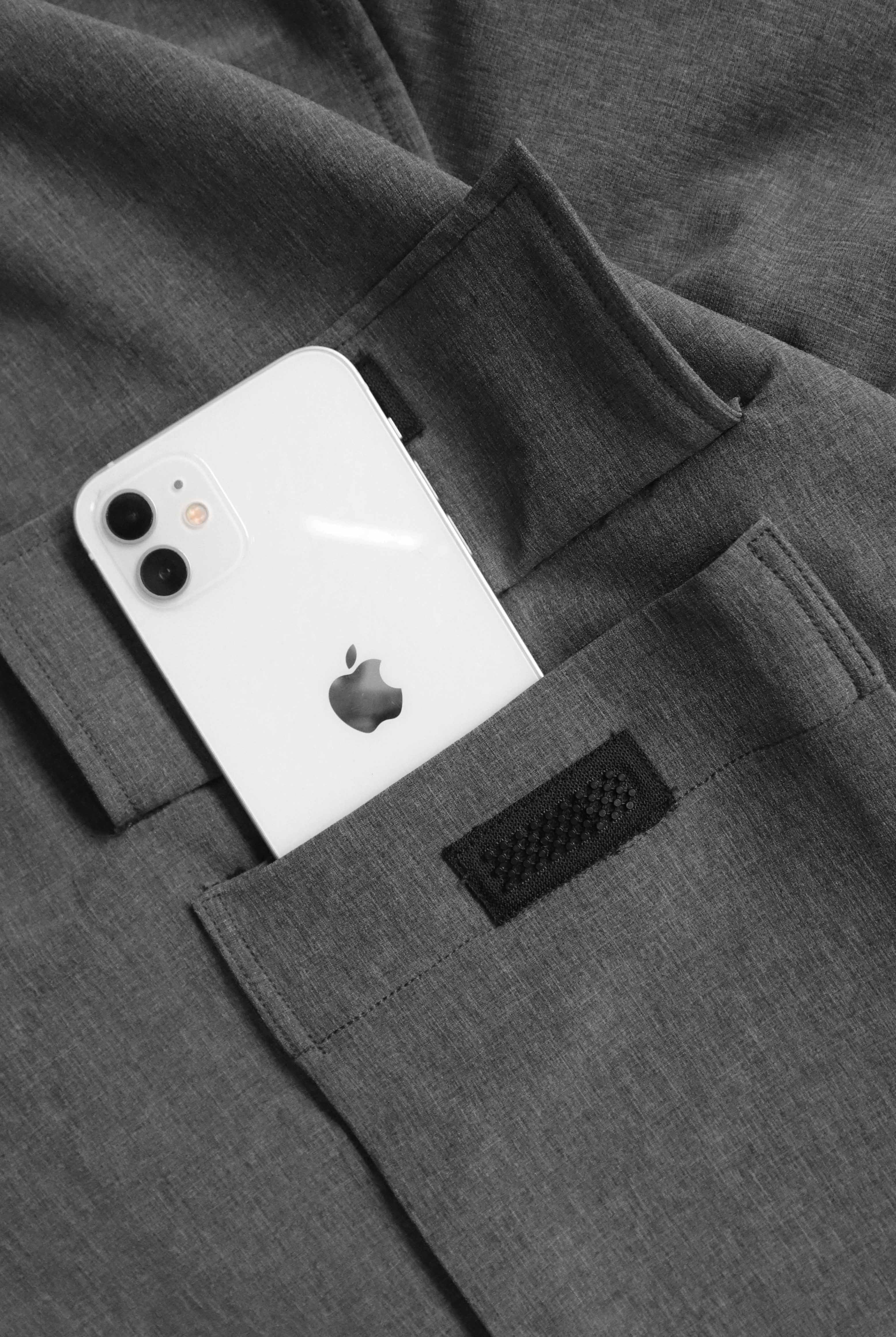 - 單邊口袋、兩側隱藏式口袋。