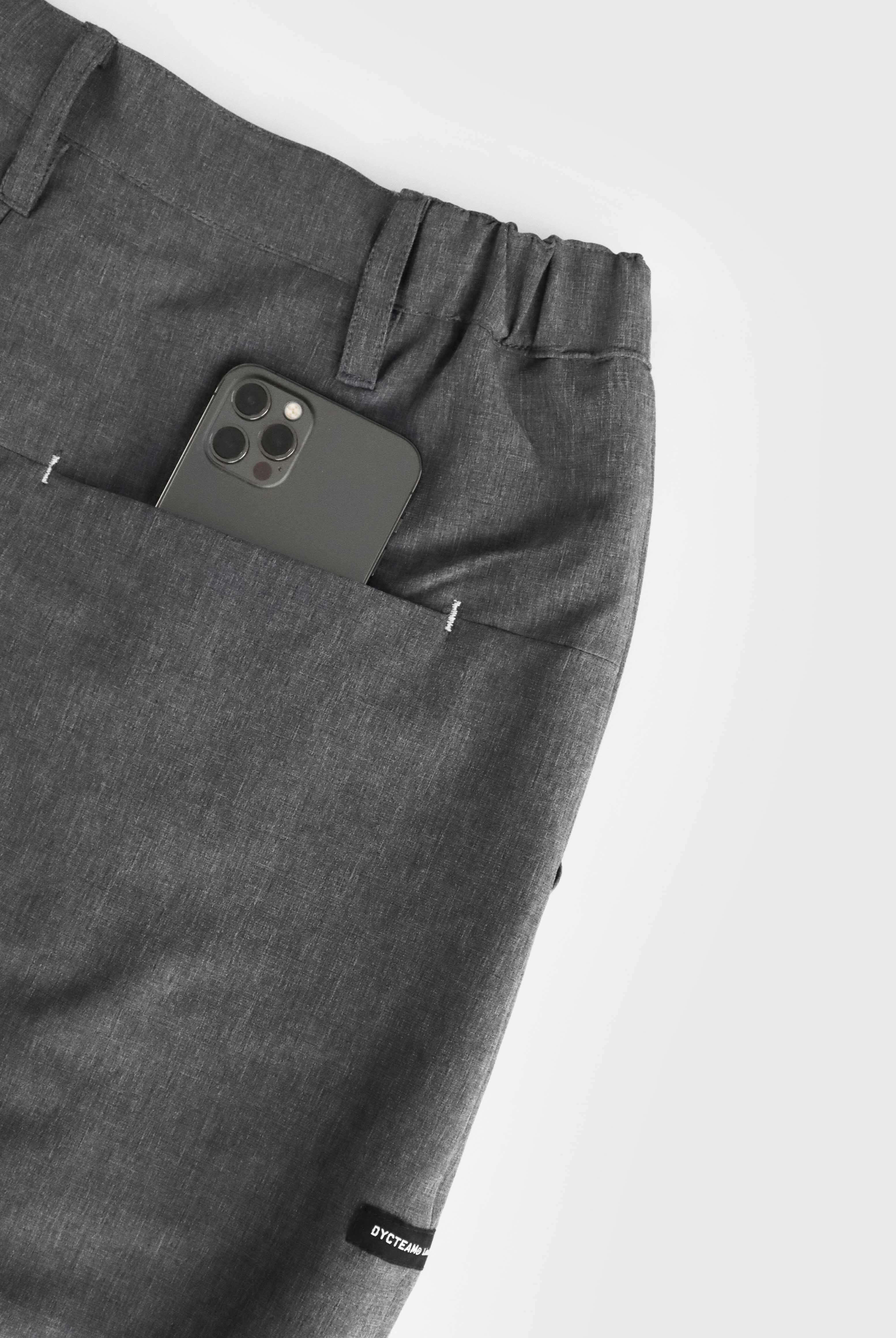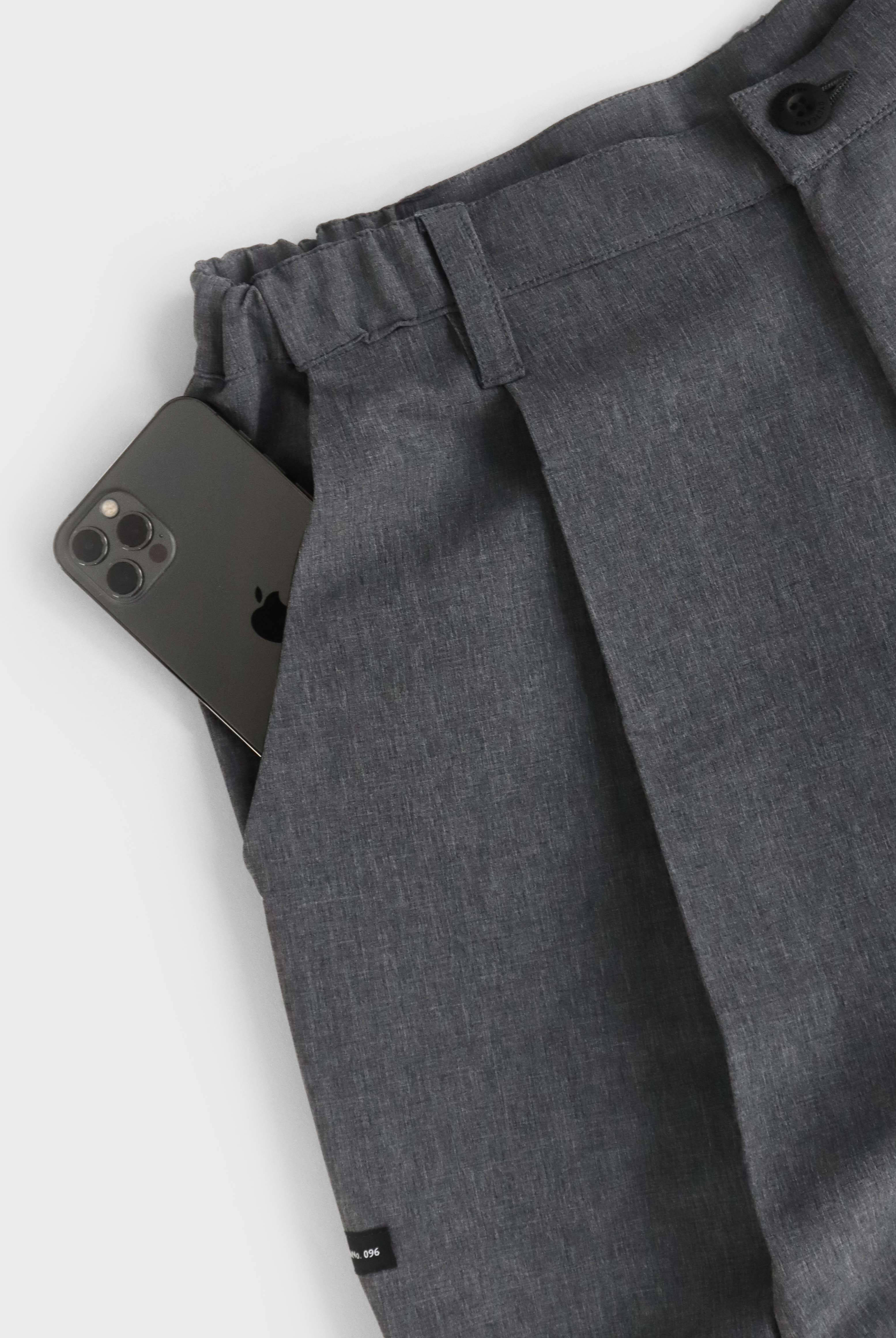 - 腰部兩處立體打摺、單邊褲管剪裁設計、多處白色打結線點綴。