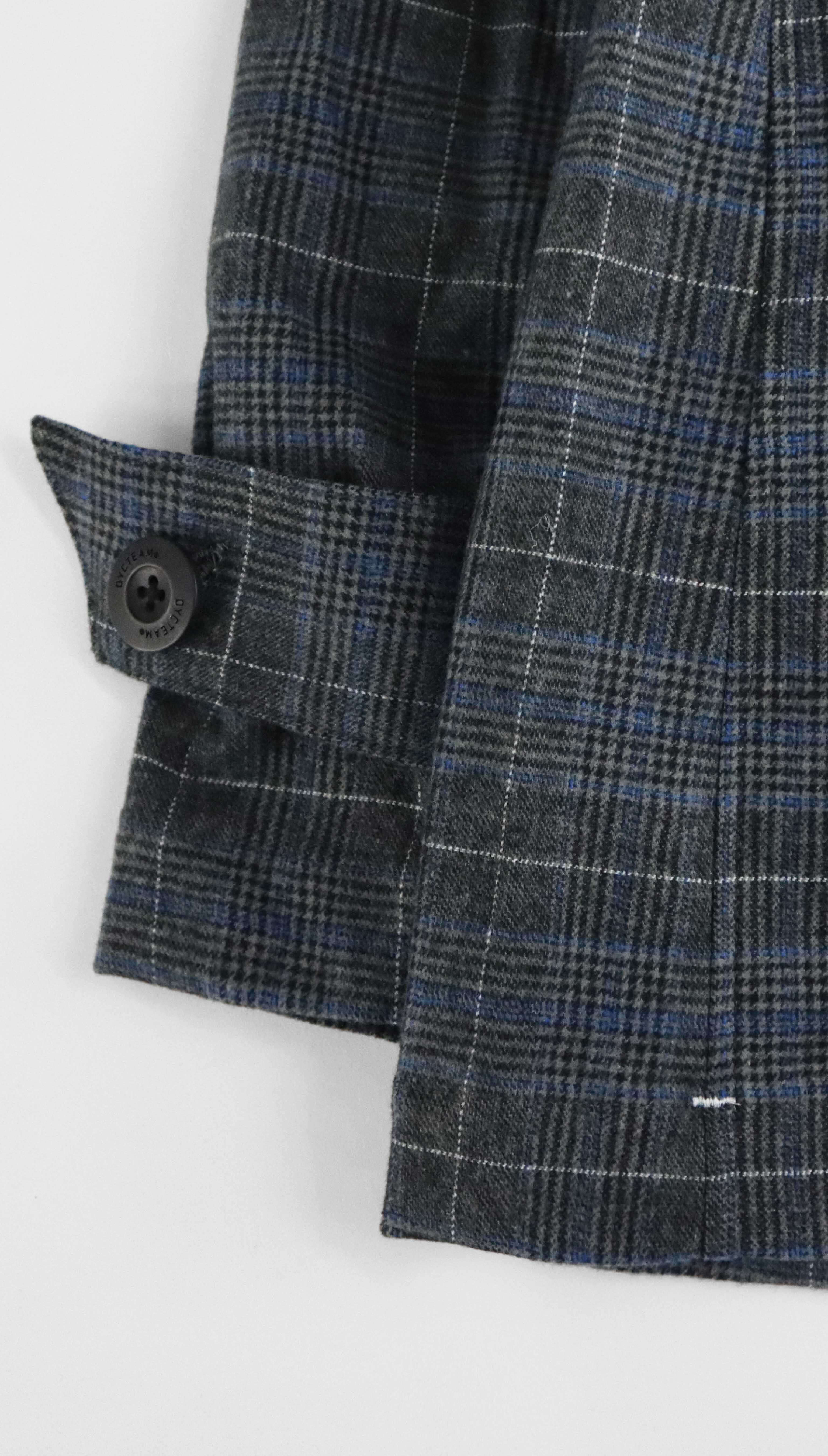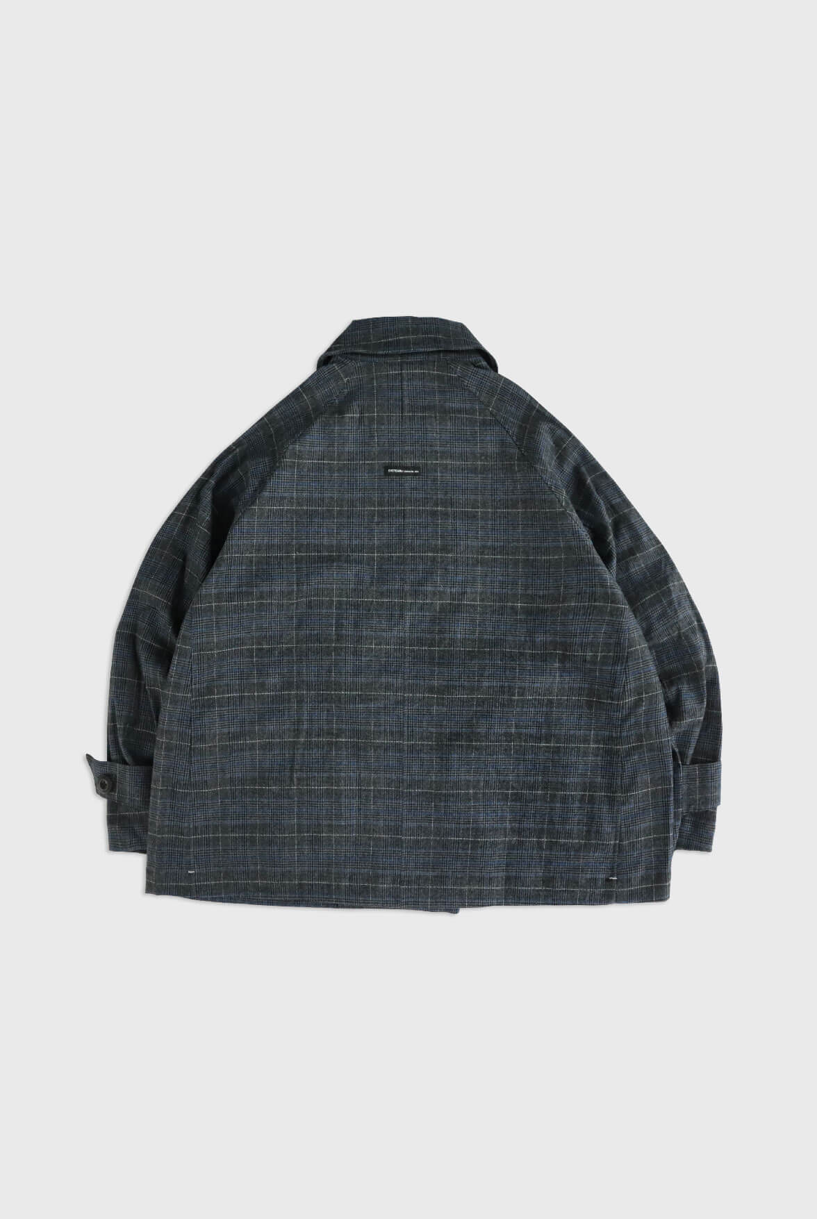 INVIGORATE - Sanding check buckle short trench coat (gray&blue)