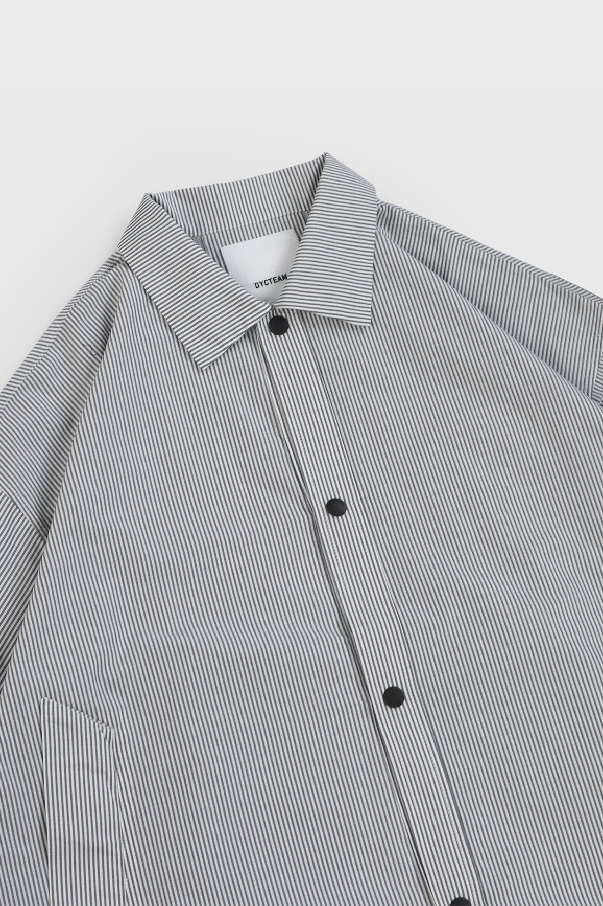 PRIME - 日常系列 灰藍白條紋_寬鬆襯衫抽繩外套
