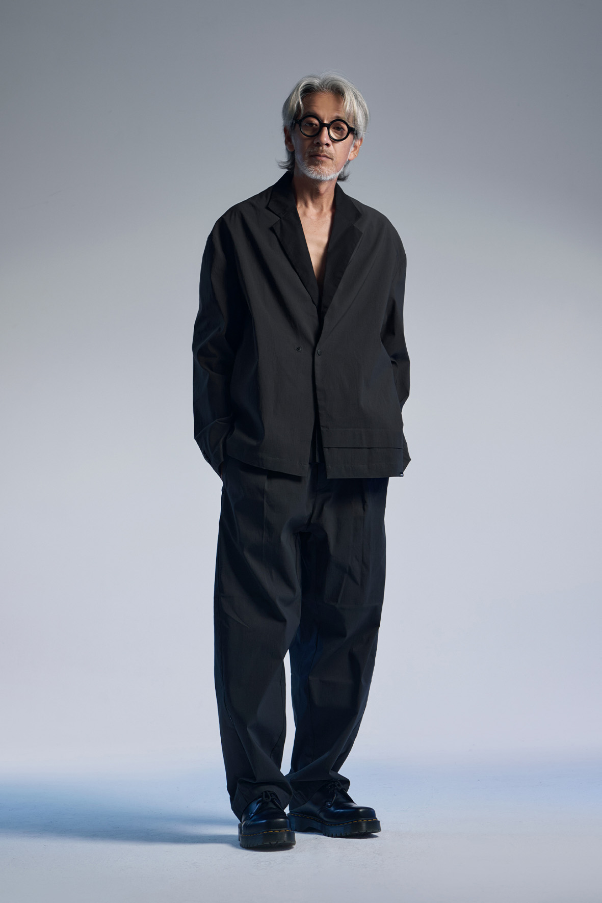 - 微寬鬆無領西裝外套。