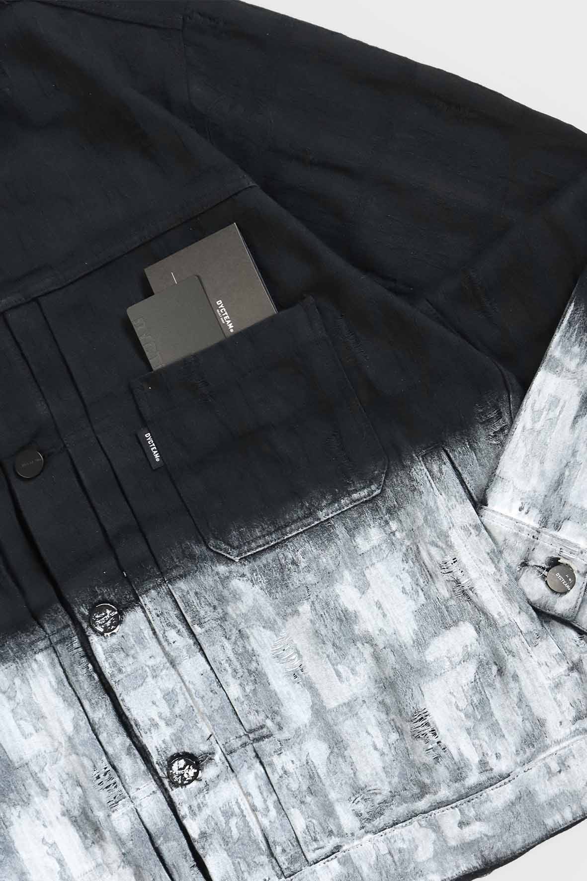 DYCTEAM x HiKESHi SPiRiT - 油漆漸層刷色緹花丹寧_不對襯牛仔外套
