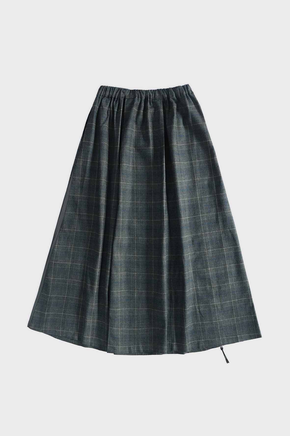 AW25 - 灰磨毛格紋_打摺鬆緊長裙