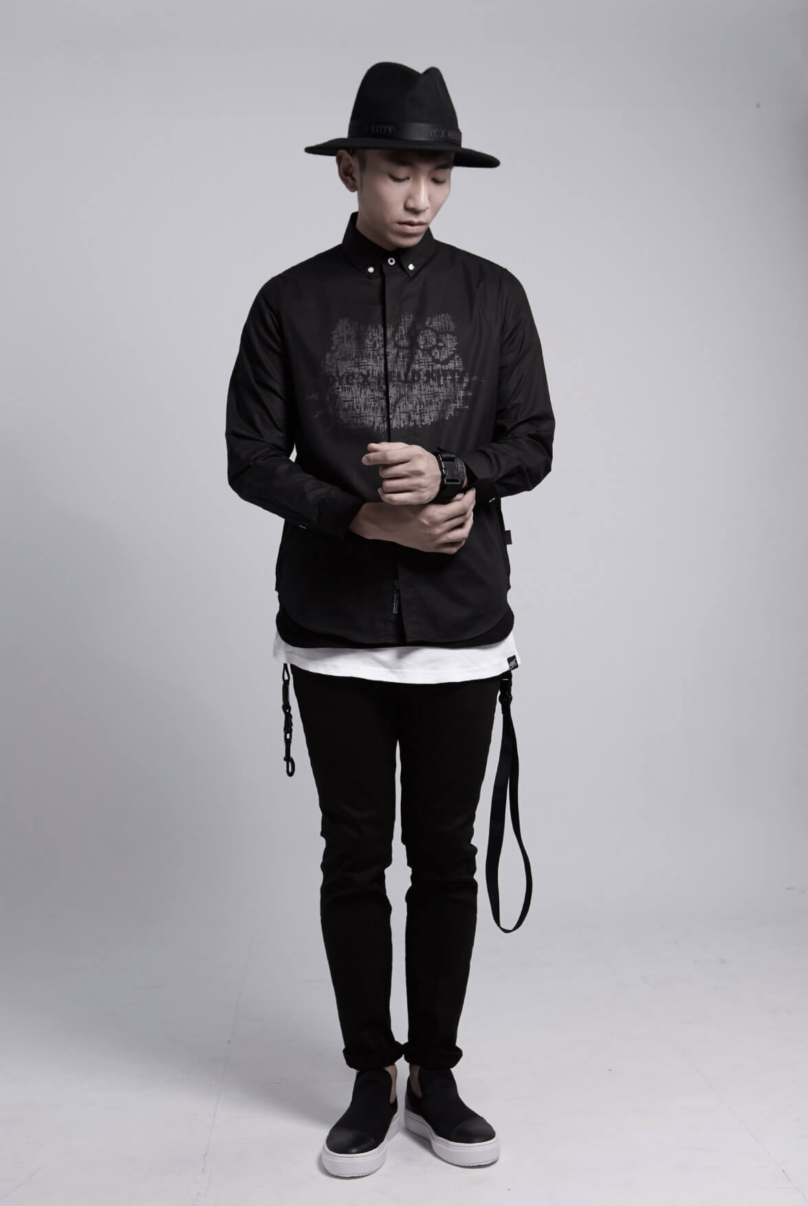 與三麗鷗聯手設計,首創全新HELLO KITTY圖像,以看似無限條交織線條組成,其實是拉遠的城市街道圖所組成的都會叢林縮影,並突破以往大眾對於KITTY較粉色可愛感的刻板印象,改以簡約並帶有質感的黑白為主色調。