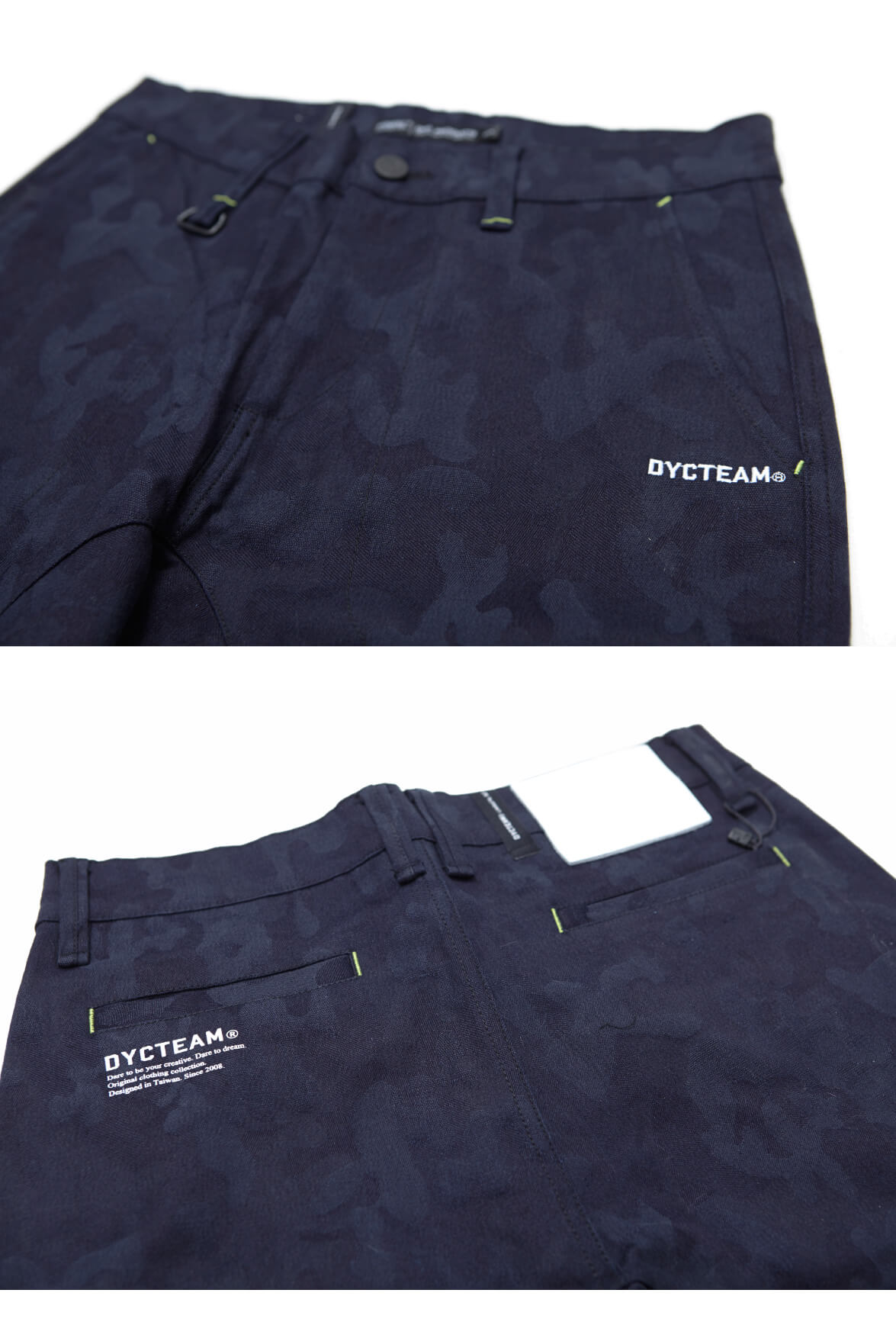 1. 選用高品質彈性迷彩丹寧面料。