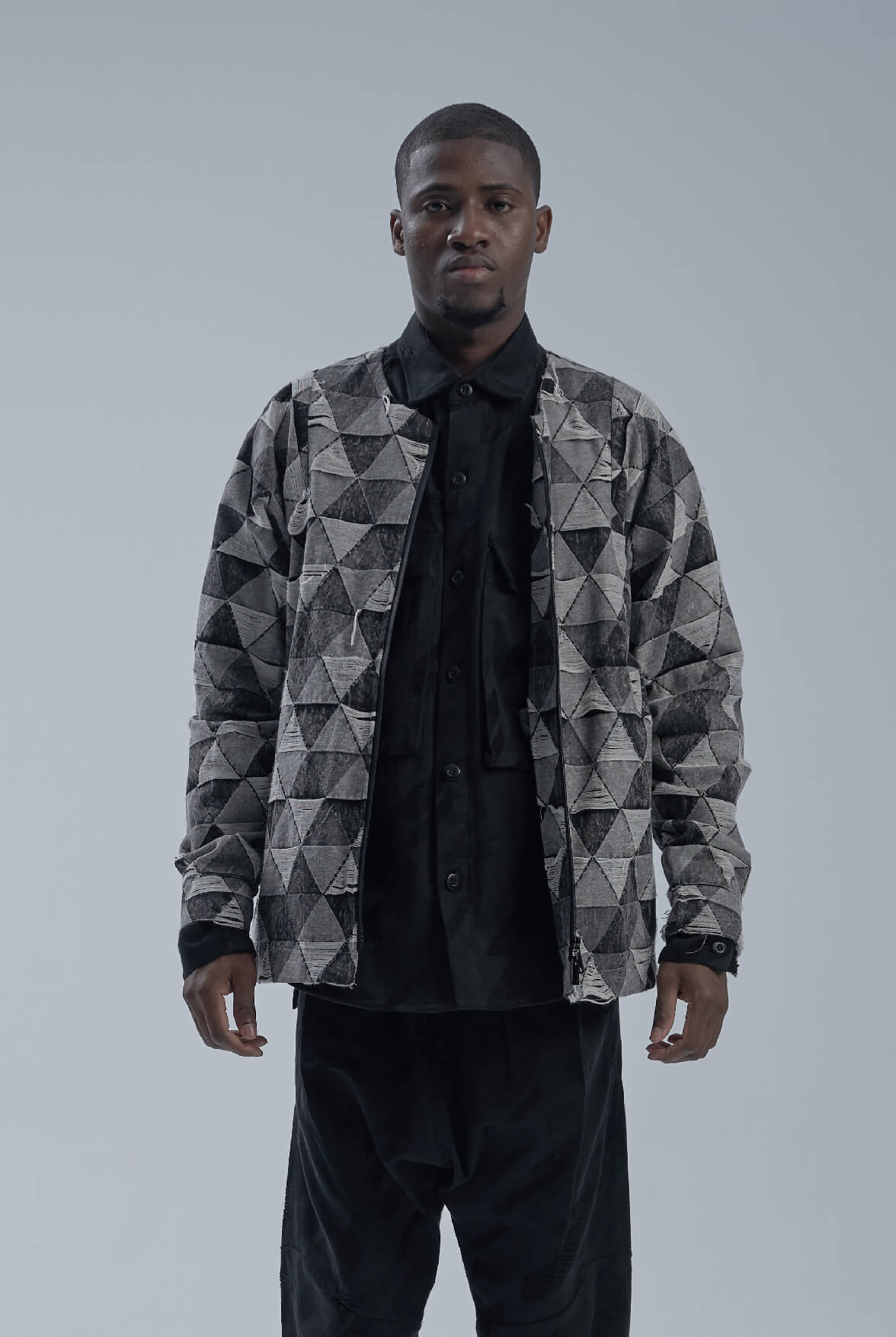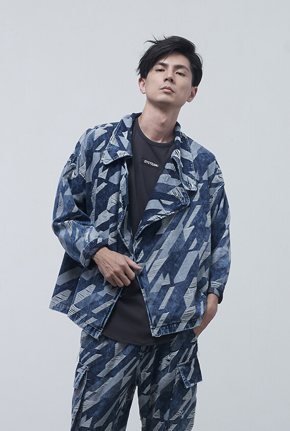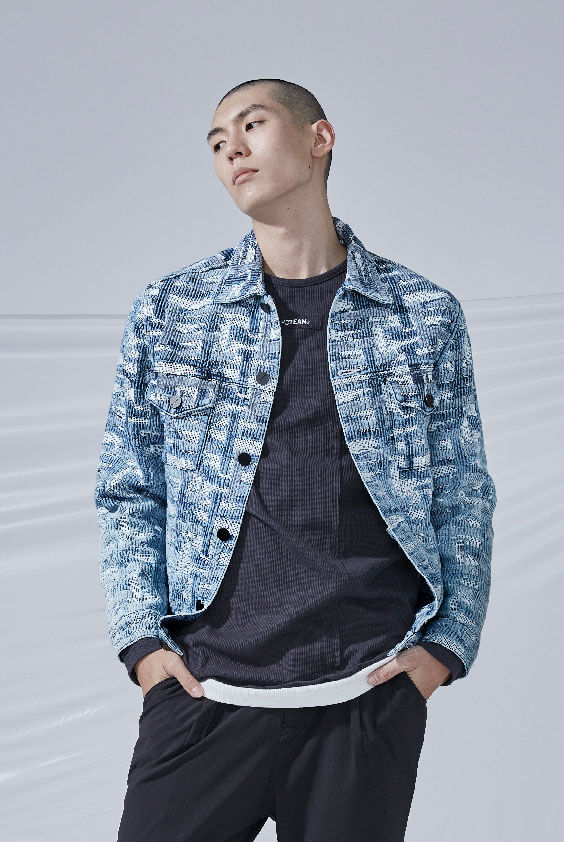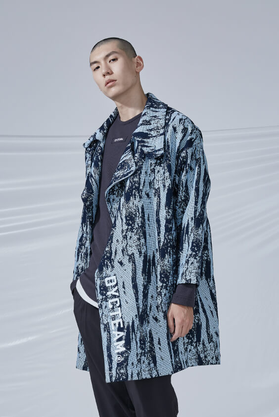 AW19 - collarless snow wash jacquard COAT