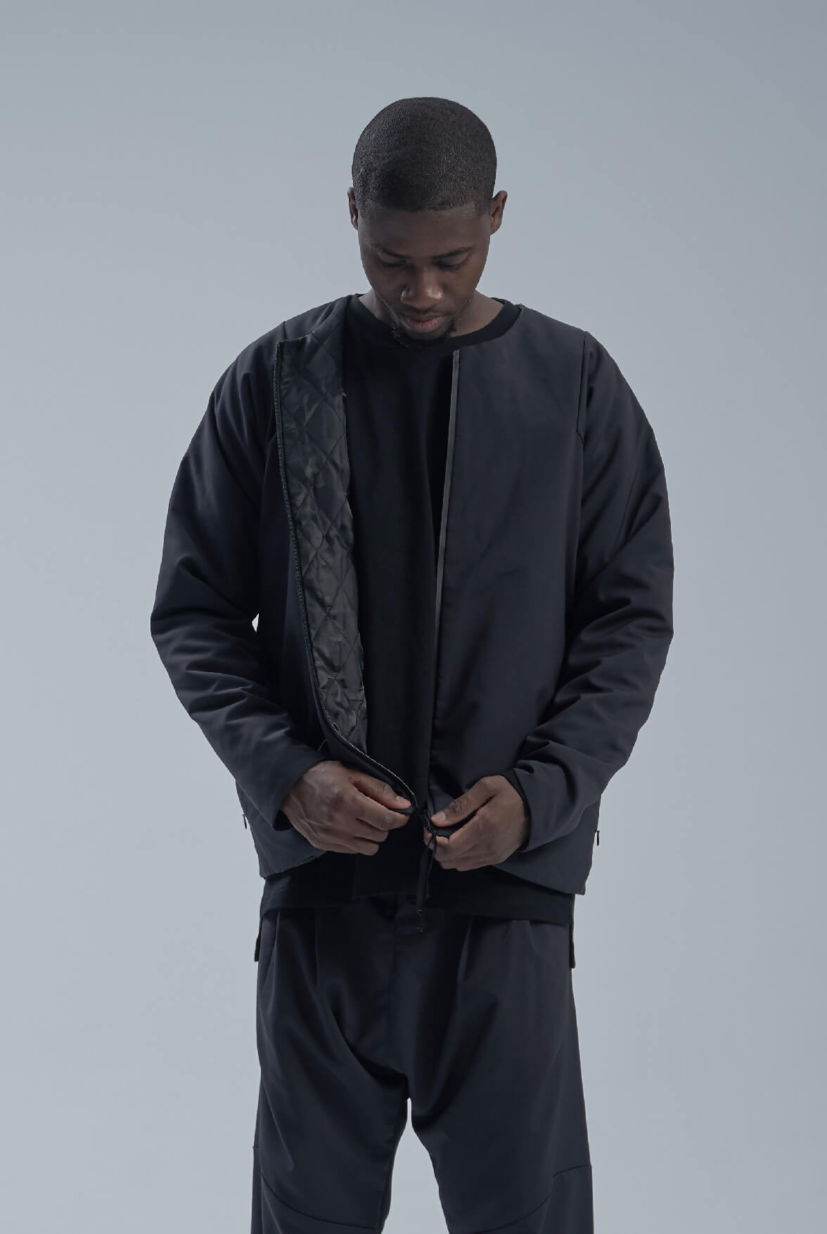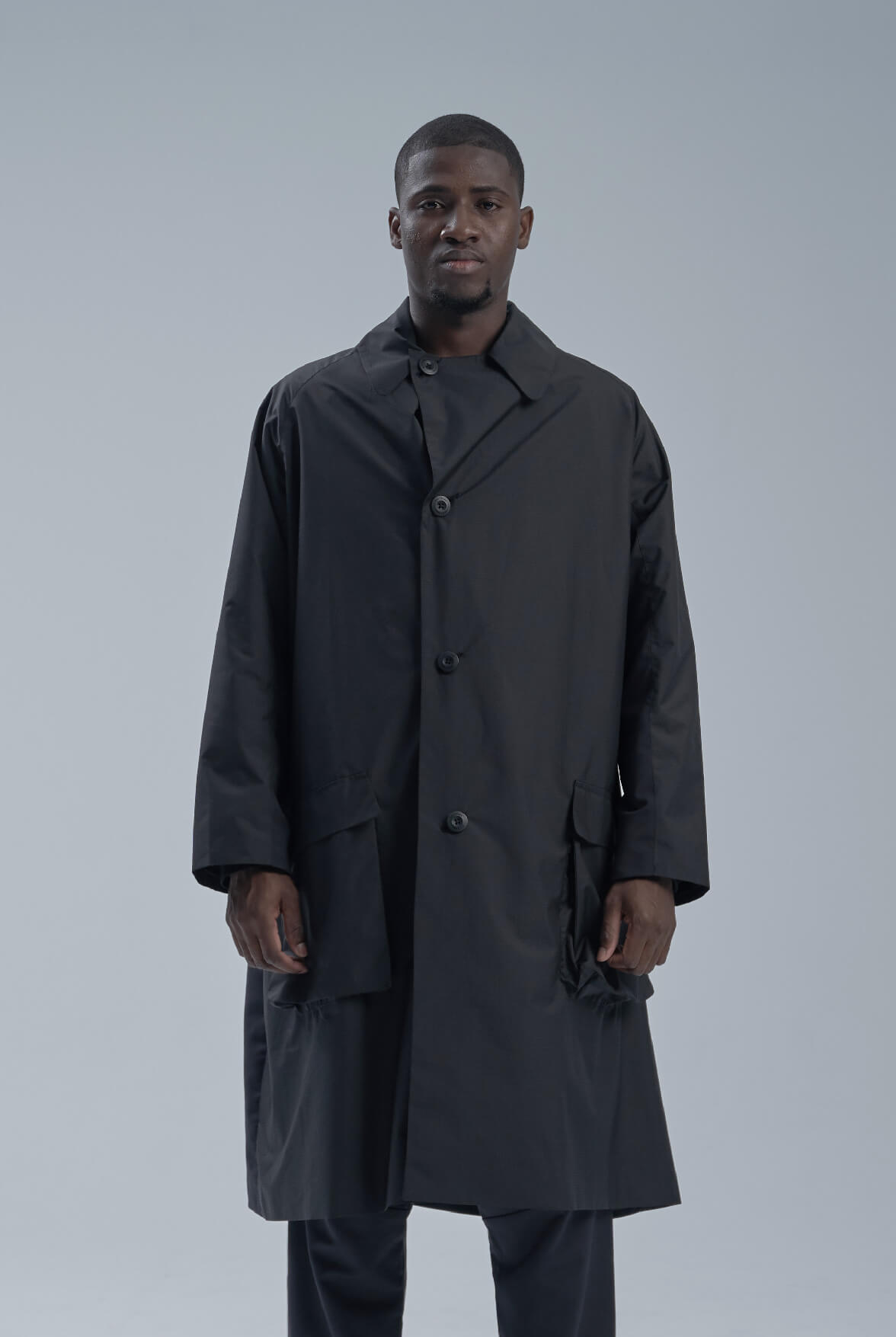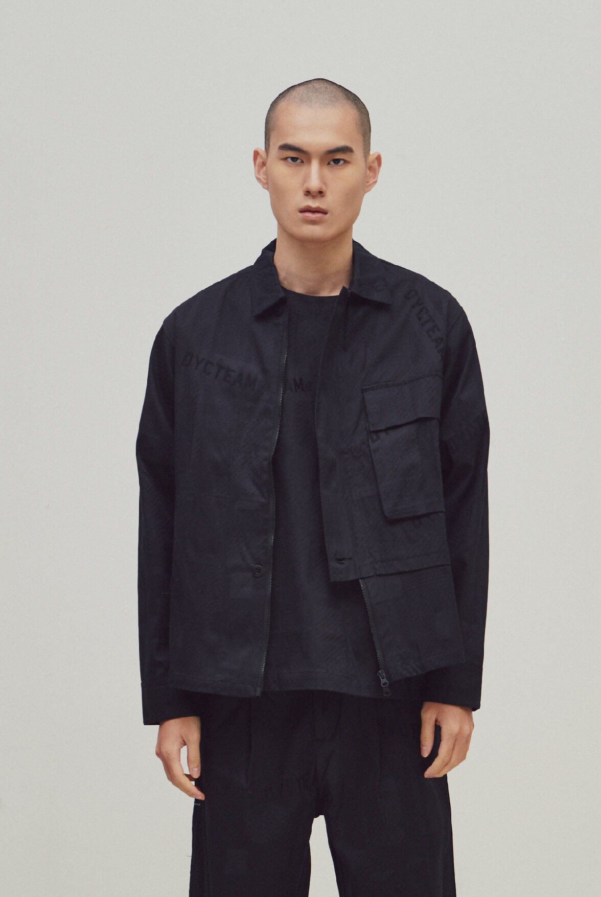 EVOLVE(D) - Black Logo jacquard asymmetric zipper coat