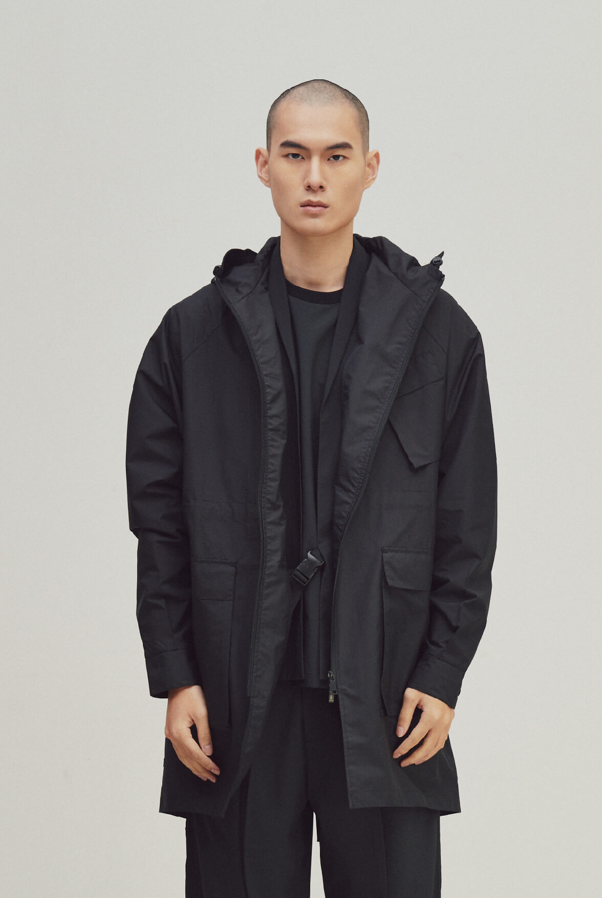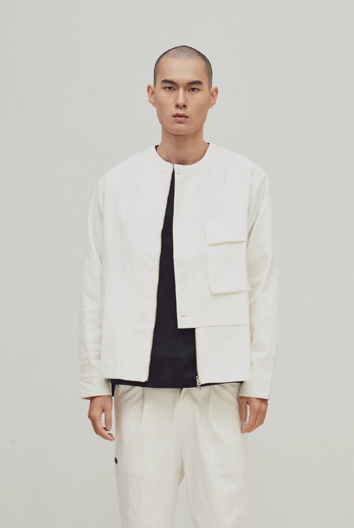 EVOLVE(D) - White Logo jacquard asymmetric zipper coat
