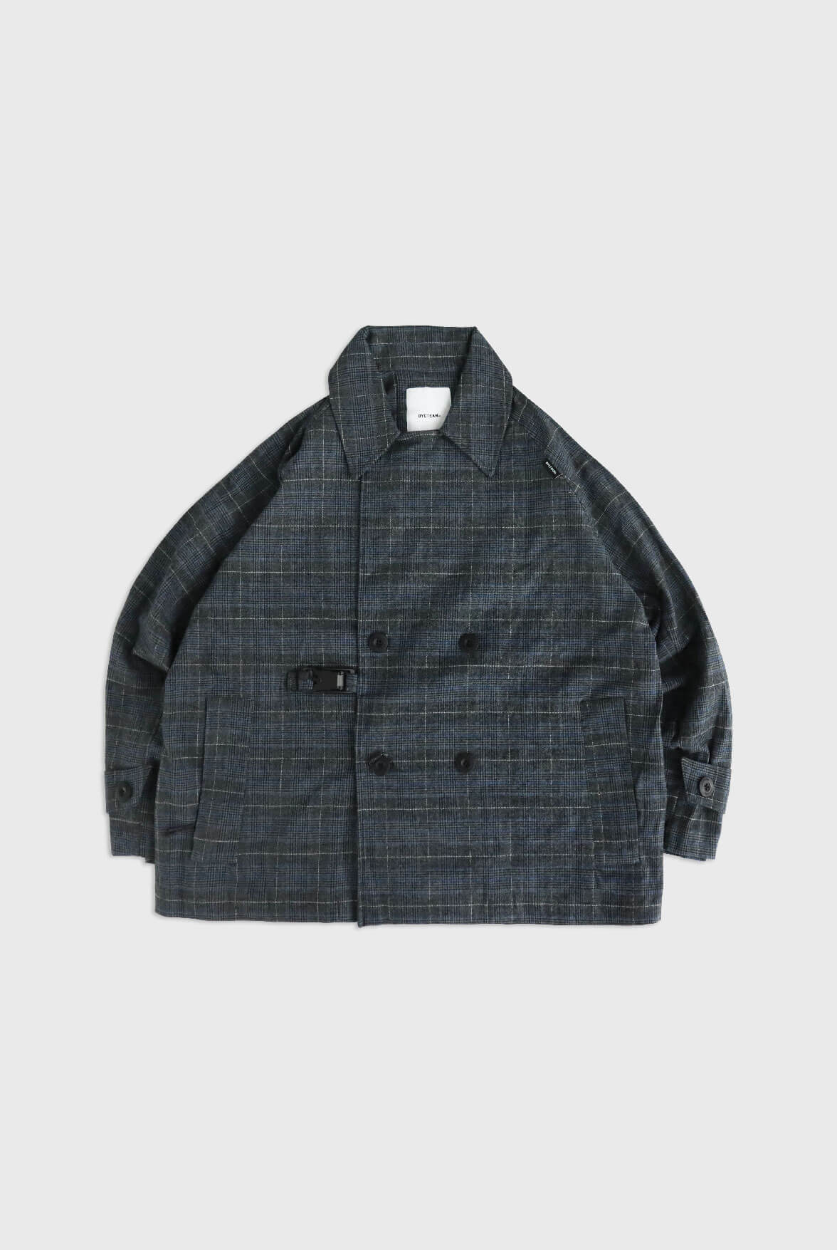INVIGORATE - Sanding check buckle short trench coat (gray&blue)