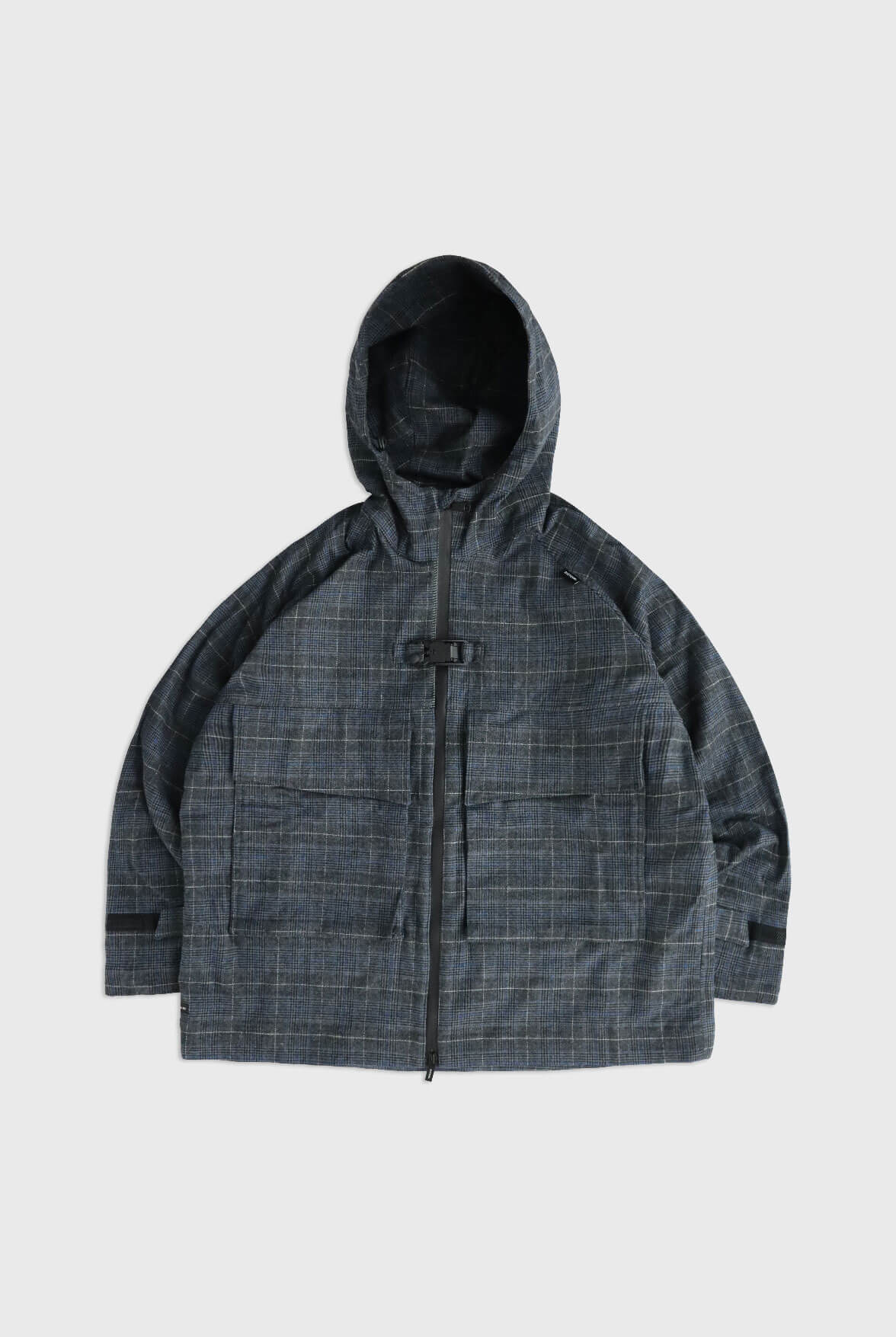 INVIGORATE - Sanding check buckle hooded jacket (gray&blue)
