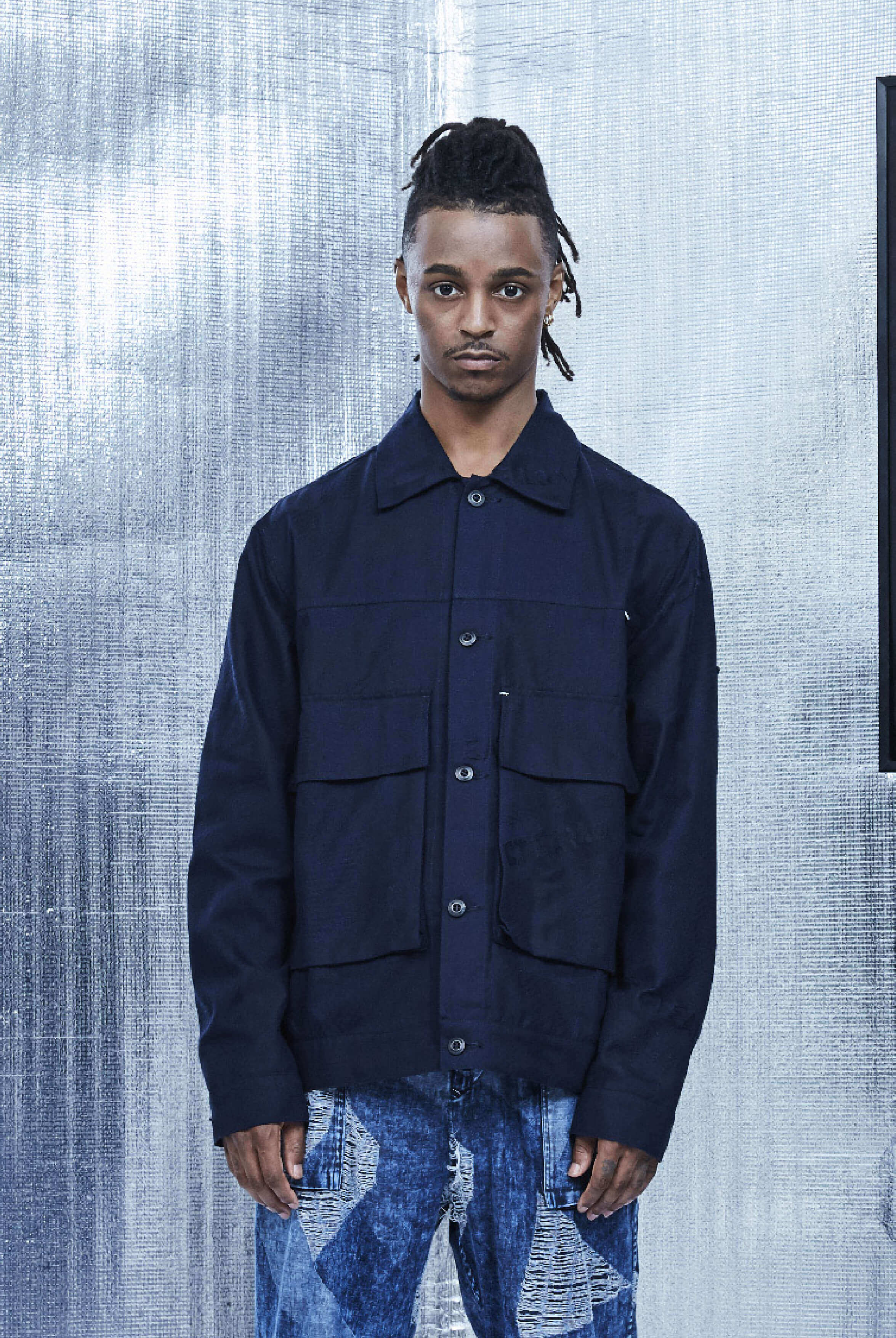 RE:FORM - Patch pocket zip-up shirt (blue)