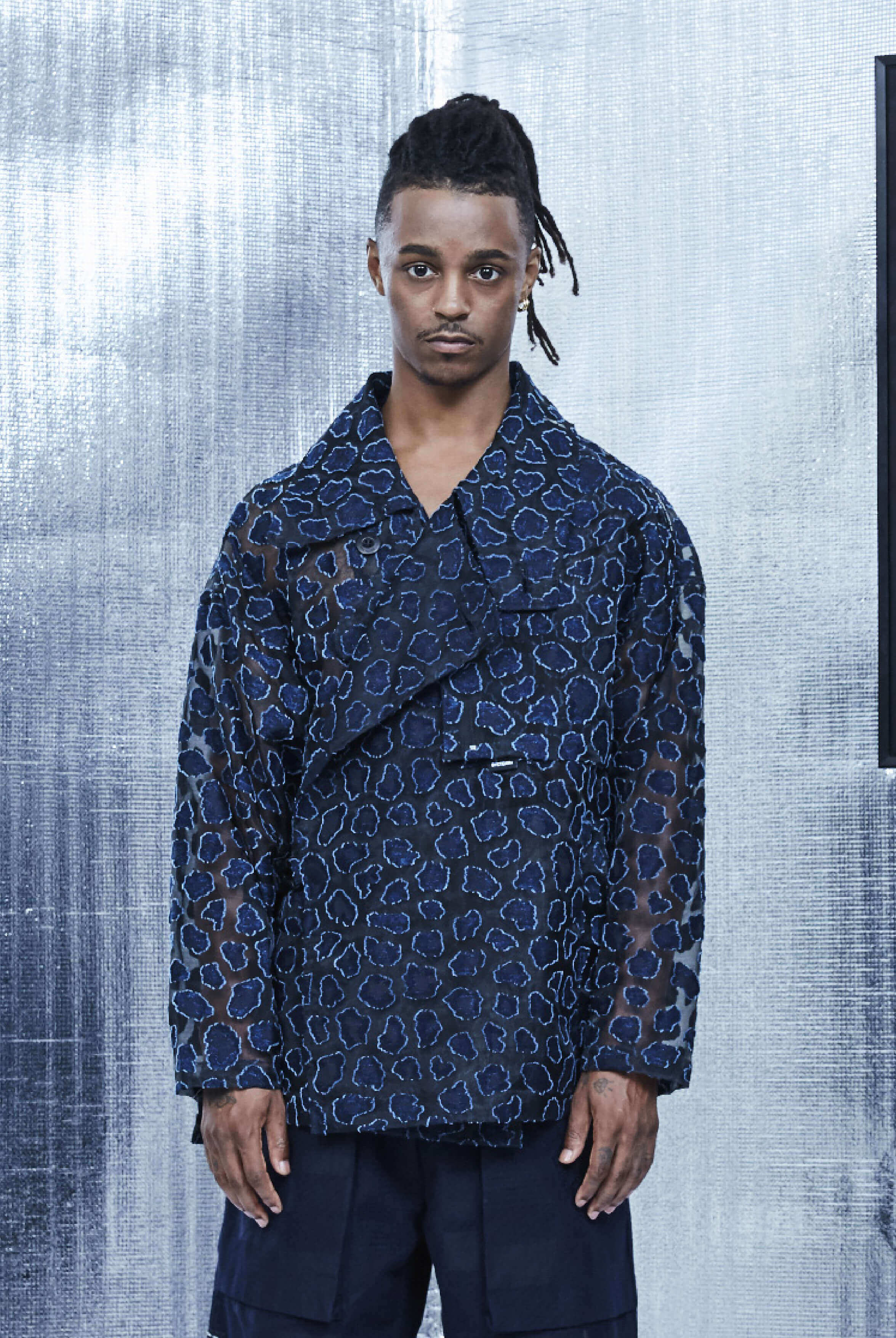 (DIST.) - see-through leopard pattern Jacquard short trench coat