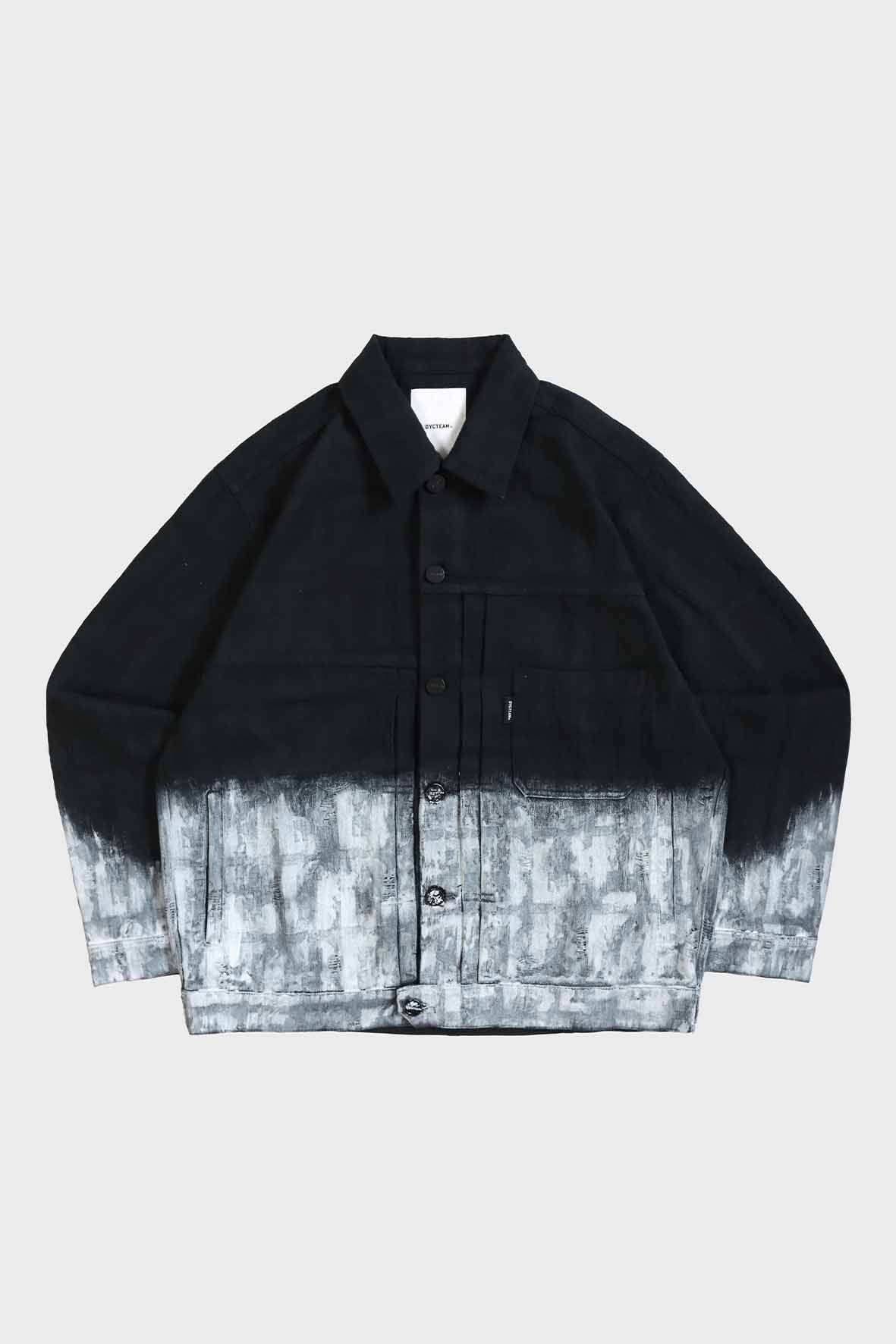DYCTEAM x HiKESHi SPiRiT - 油漆漸層刷色緹花丹寧_不對襯牛仔外套