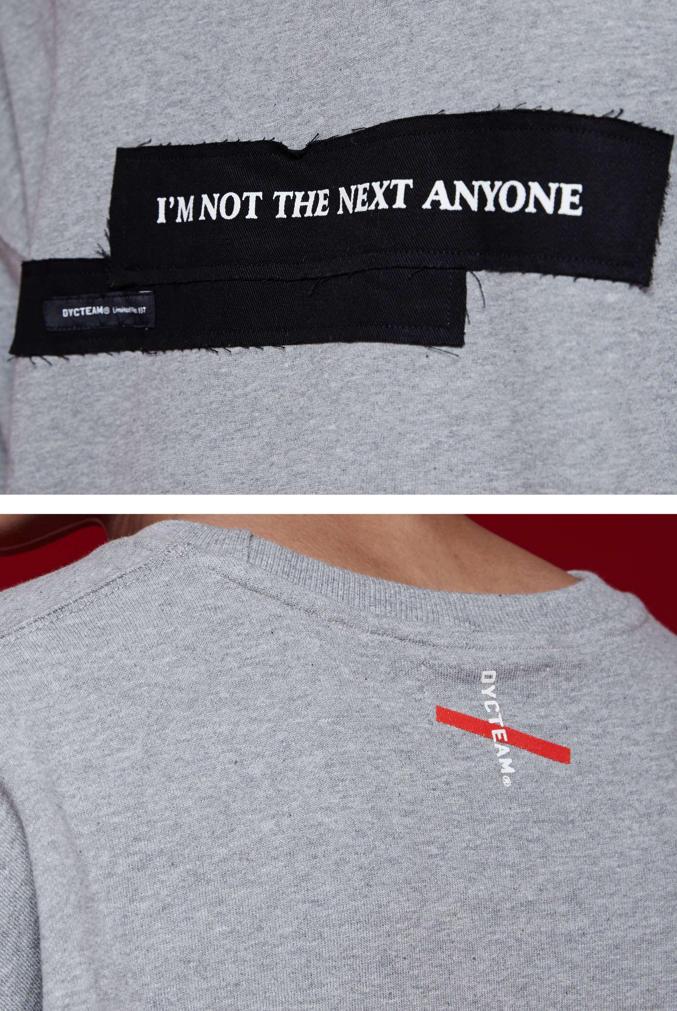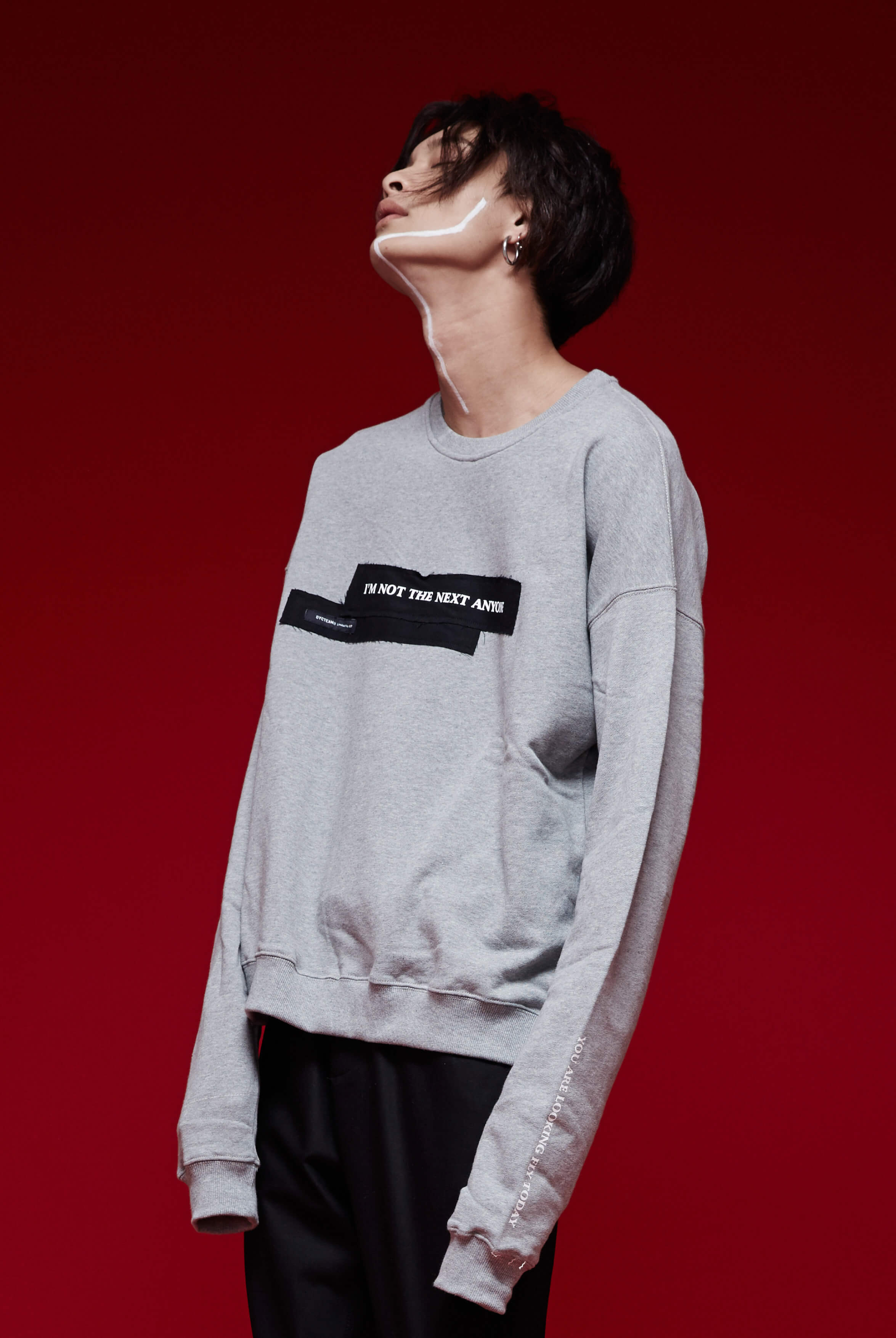 在這次的商品規劃上,結合了時下流行元素的過長袖,不收邊車縫、細緻的刷破處理,並大量運用「 I am not the next anyone.」、「You are looking fly today.」 等標語,同時結合鮮明紅色點綴細節,突顯此系列衷於自我的強烈性格展現。