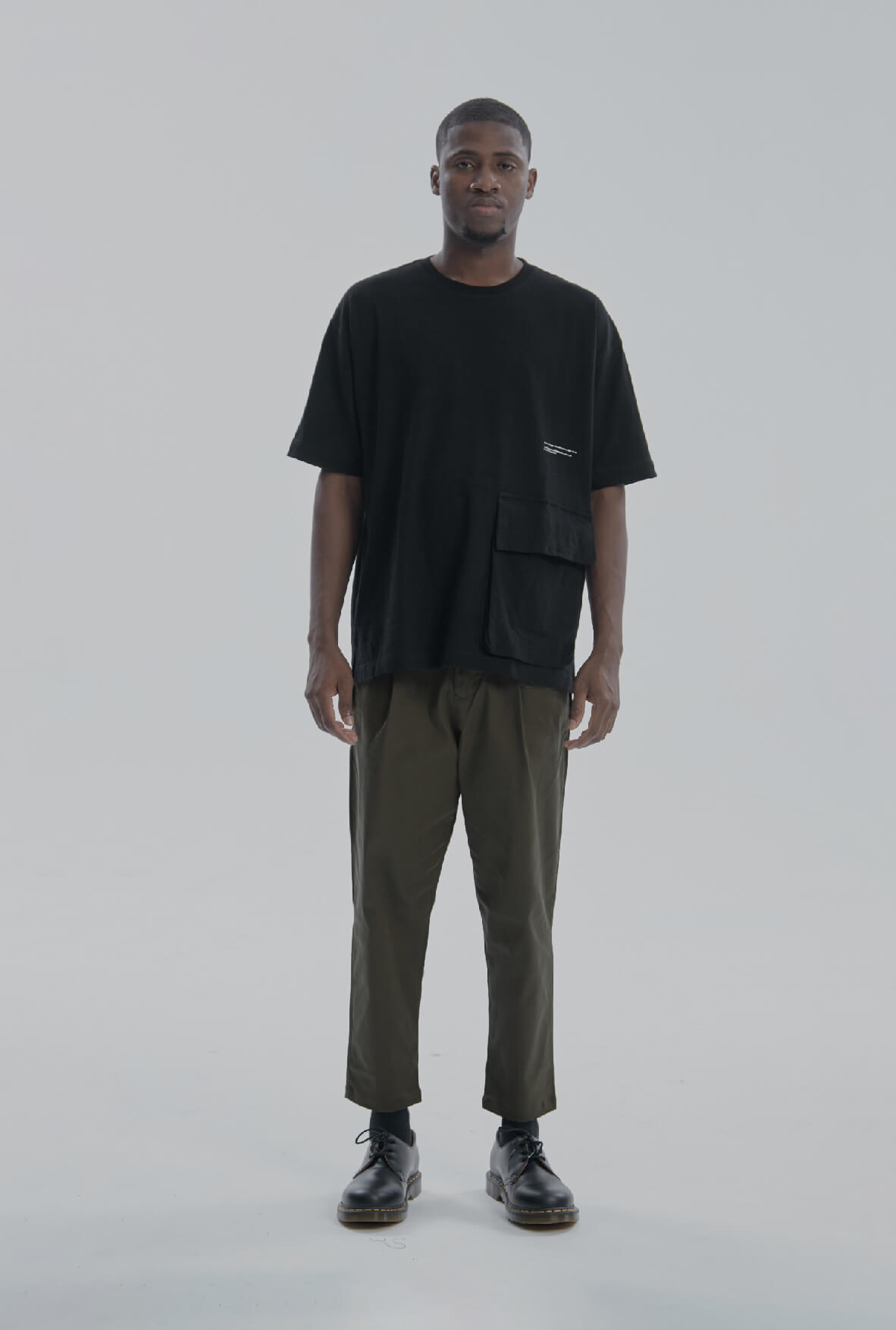 DYCTEAM - 寬鬆落肩單側貼袋TEE (BK)