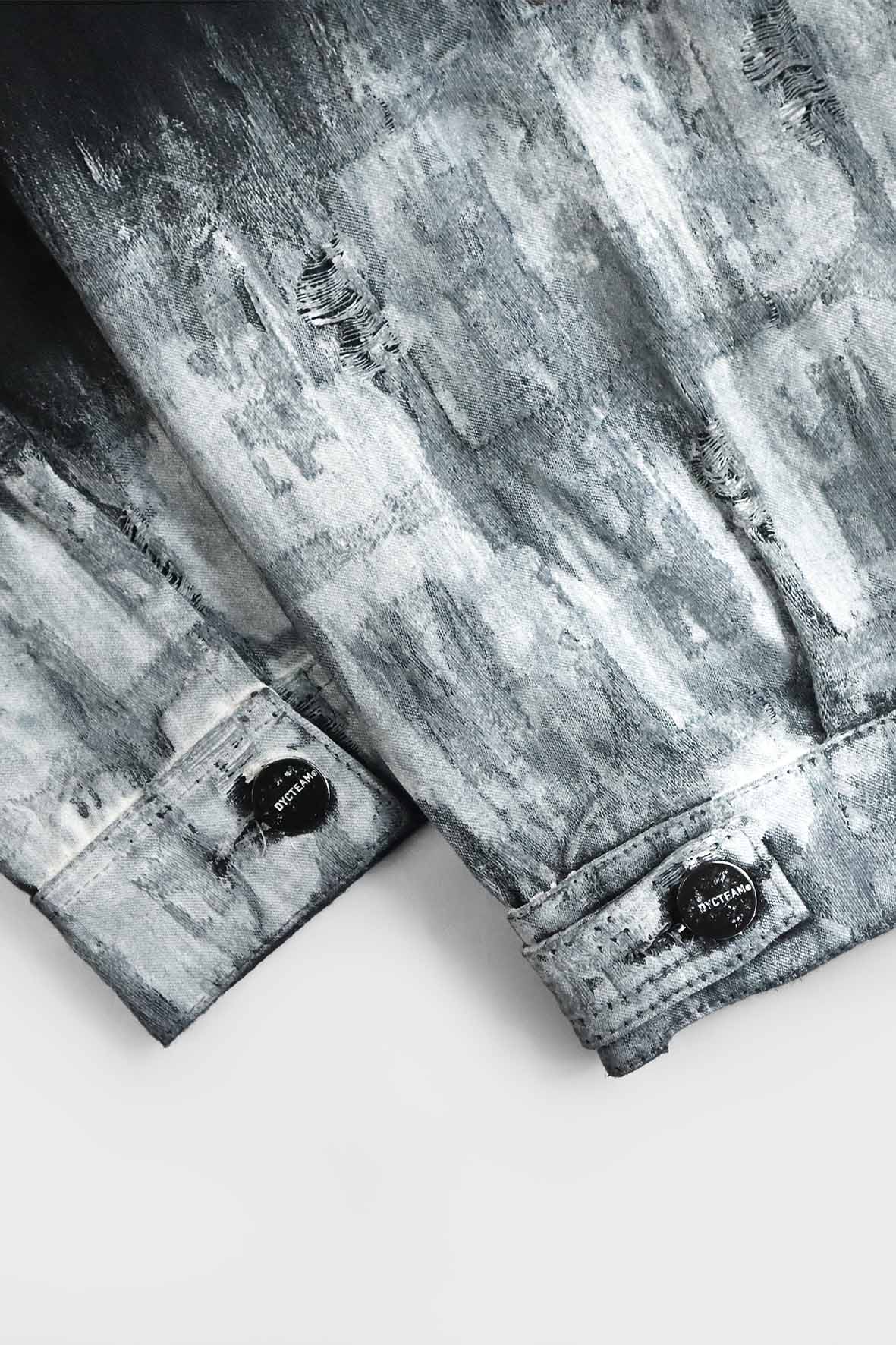 DYCTEAM x HiKESHi SPiRiT - 油漆漸層刷色緹花丹寧_不對襯牛仔外套